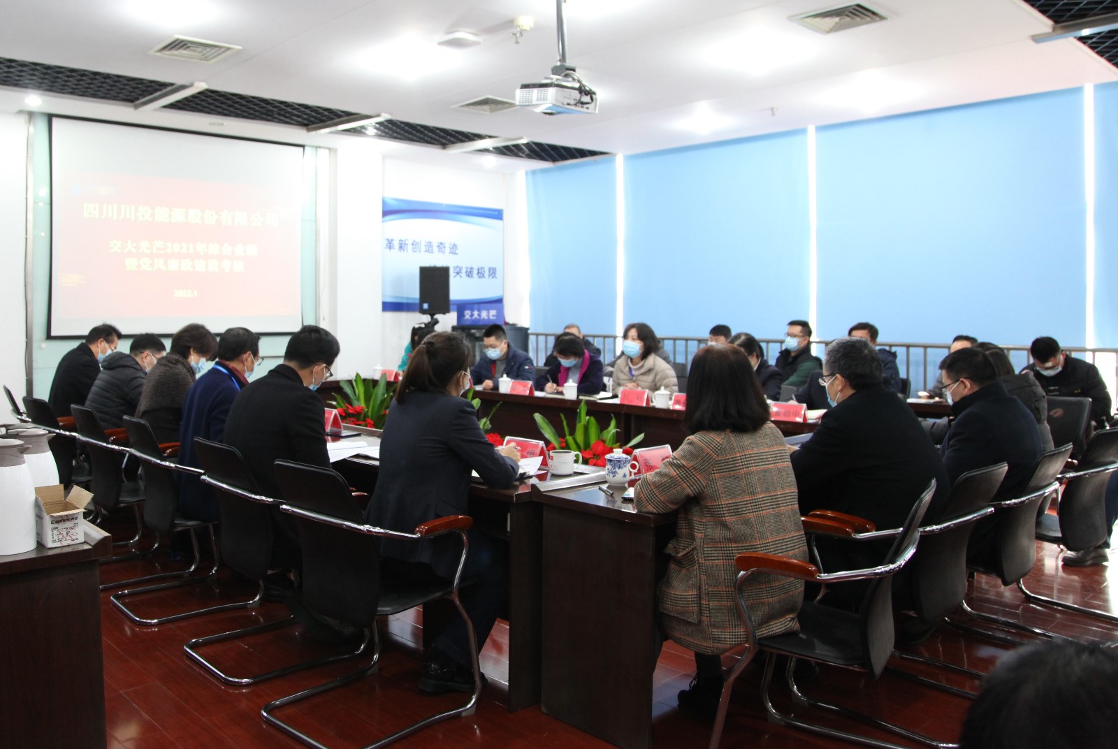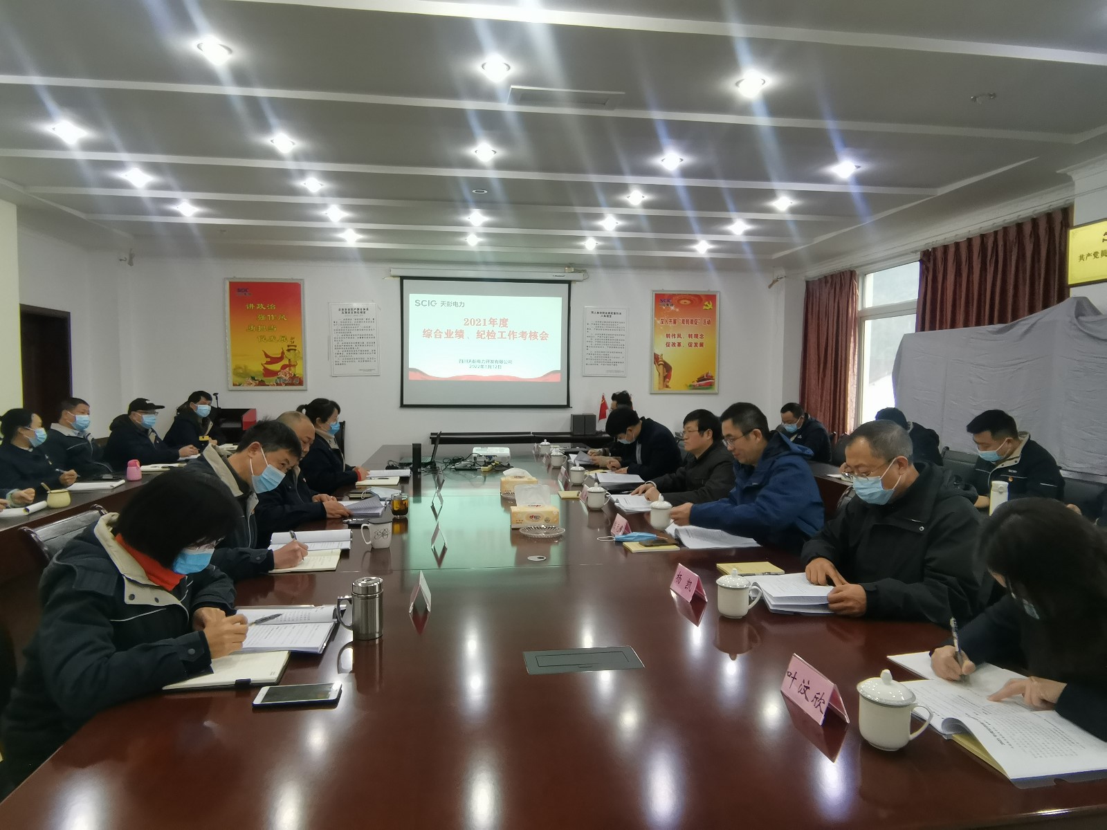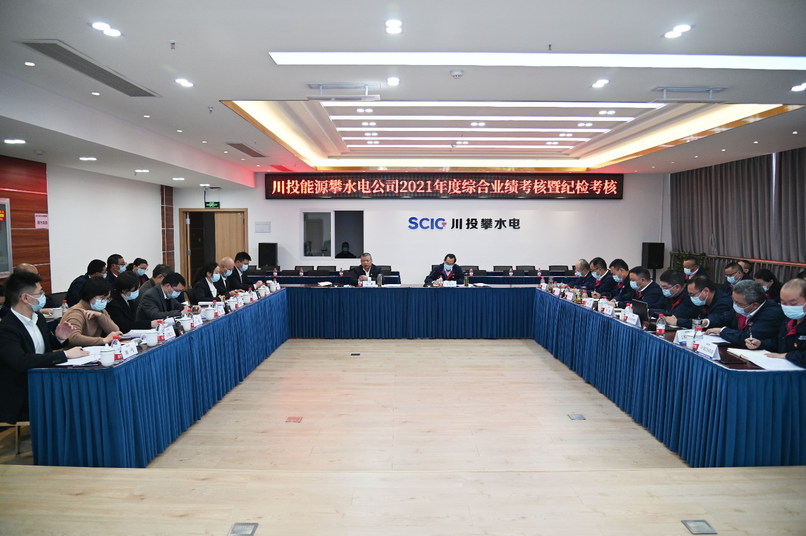 根据考核安排部署,杨洪及班子成员分别率领四个考核工作小组,于2022年1月10日至14日分赴攀枝花水电、川投电力(槽渔滩)、交大光芒与天彭电力开展综合业绩考核工作。综合业绩考核采取现场汇报、民主测评、个别谈话与资料查阅的方式进行。
