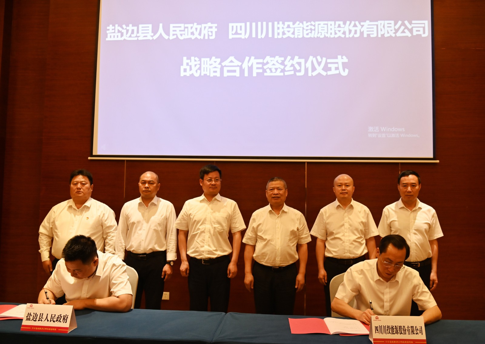 签约仪式上,盐边县县委常委、常务副县长秦帆代表县政府与易倍体育 副总经理、攀水电公司党总支书记、董事长、川投(攀枝花)新能源公司董事长徐孝刚签订战略合作协议。