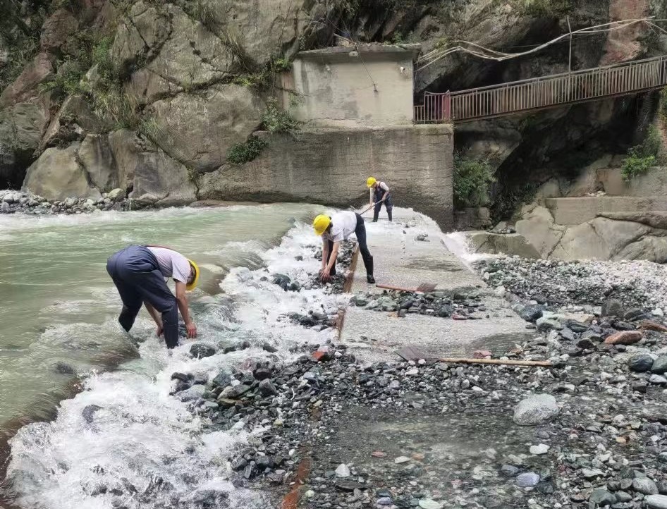 连日骤减的来水量迫使天彭电力凤鸣湖水库水位只能保持在低位运行。此刻,对保供者来说,每一滴来水都弥足珍贵,而做好引水工作就成为了保障发电生产和城区供水的重中之重。天彭电力上下联动,全员作战,沙金车间、凤鸣桥车间一线坚守责任到岗、迅速行动,顶着烈日清理底格栏栅坝坝面砂石、库区进水闸浮渣和前池淤积物,严格执行“每日一小捞、三日一大捞、洪水天天捞”制度,做到多引水和保水源“两手抓、两手硬”,从源头上守住保水保电的“生命线”。