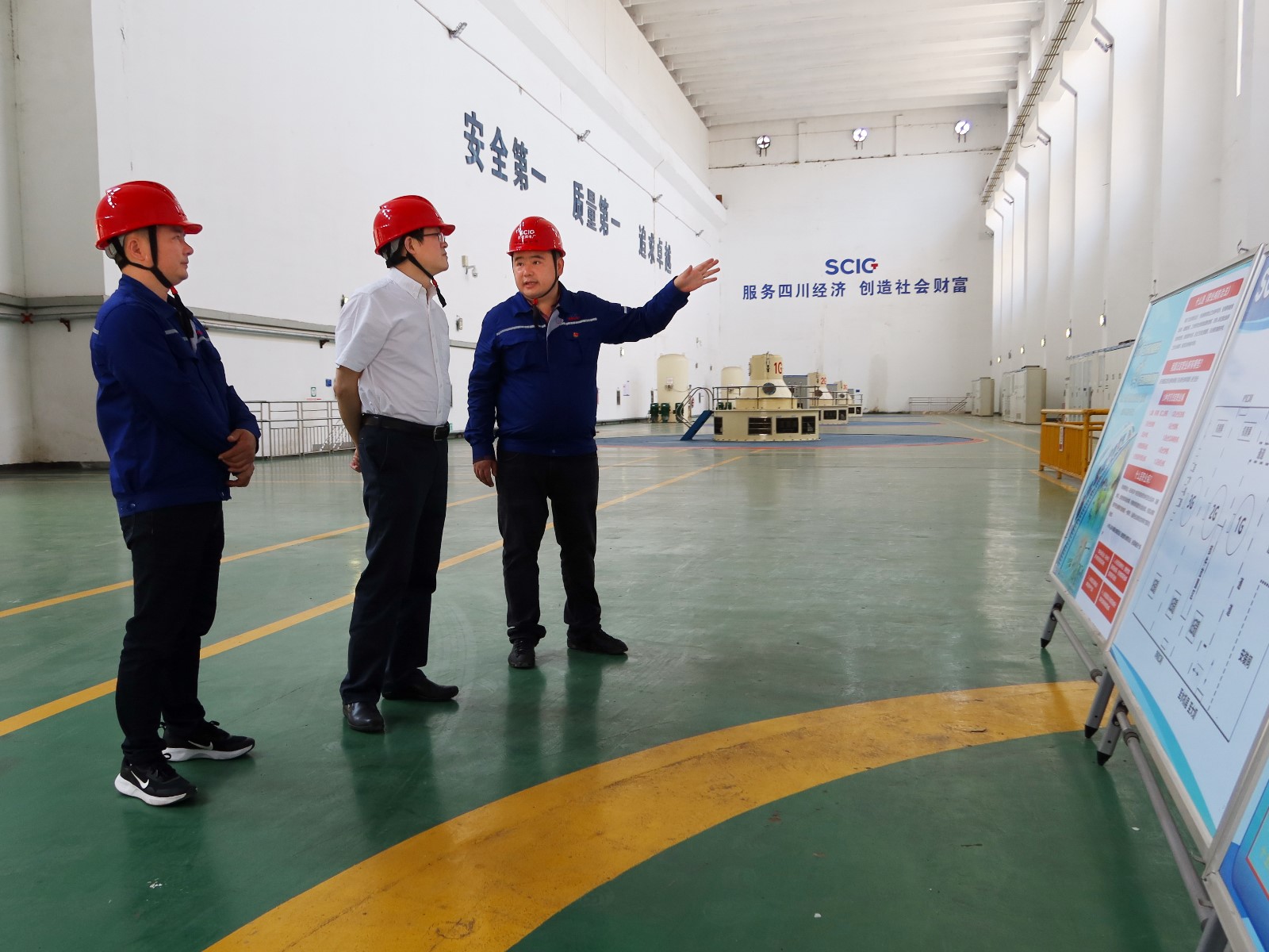 杨洪一行来到发电厂房,检查机组运行状态和隐患排查治理情况,查看《职业病防治法》宣传周开展情况。向一线干部员工致以“五一”劳动节祝愿。