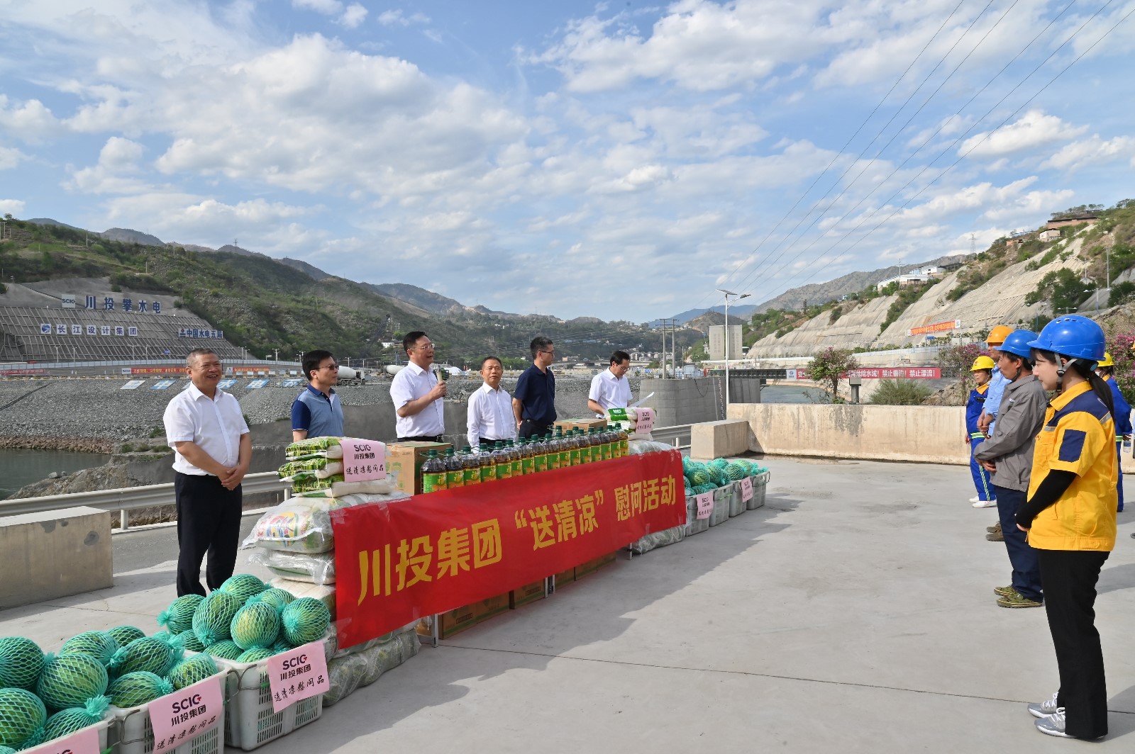 督导检查组深入康家沟渣场、大坝基坑施工现场,重点检查了攀水电公司“迎大运•保安全”集中整治、重大事故隐患专项排查整治、安全生产责任落实以及风险辨识管控情况,并代表集团公司慰问了攀水电公司及电站参建单位一线员工,为大家送上防暑降温物资。