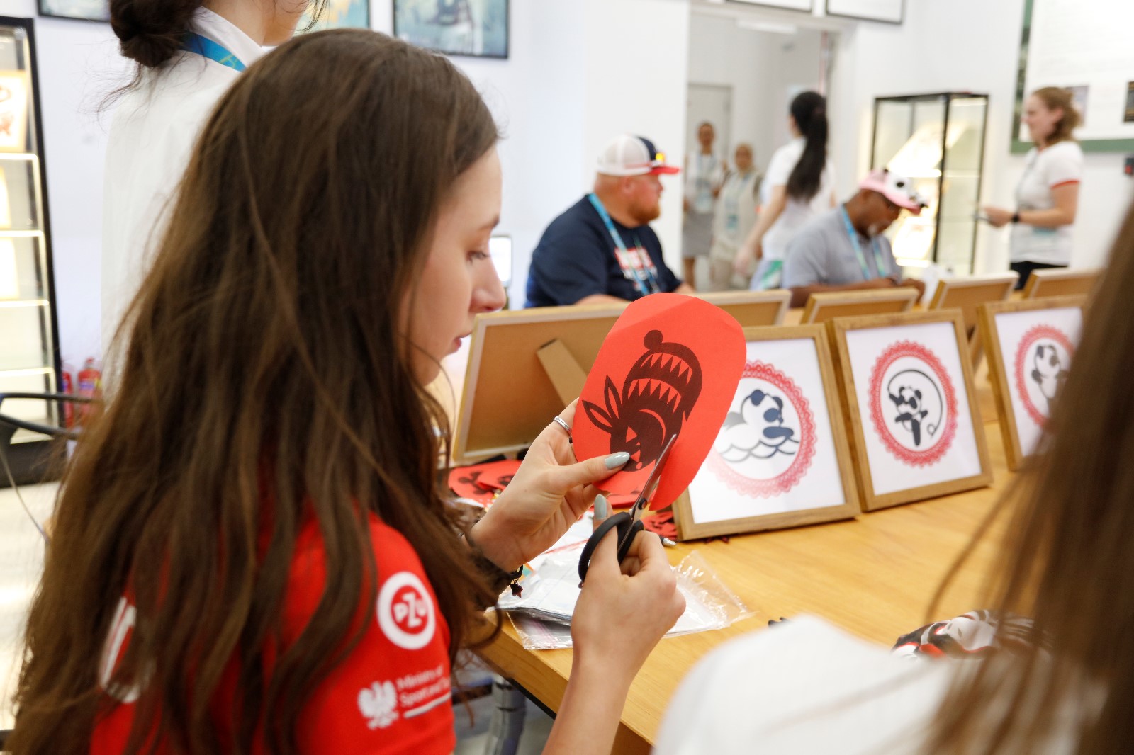 大运会期间,成都大运村里掀起一股“非遗热”,引得各大媒体前来竞相报道。互动体验中心里,神奇的剪纸也吸引了中外运动员们纷纷前来参与体验。