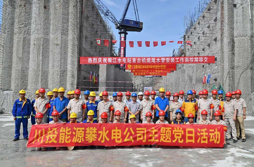 如同故宫有排水神兽螭首,银江也有独特的排水神器——尾水管。银江水电站尾水管出口直径12.05米,尾水管分3节,每节分4瓣,总重92.726吨,发电后每台尾水管排水流量可达577立方米每秒。尾水管安装是灯泡贯流式机组由土建施工向机电安装转序的标志,为加快工程推进,攀水电公司组织开展领导“分片包干”挂牌督导专项行动,开启“责任田”模式,自5月25日银江水电站首台机组尾水管安装按期交面开始,其余5台机组尾水管相继交面并安装完成,整体工期较原计划提前20天。