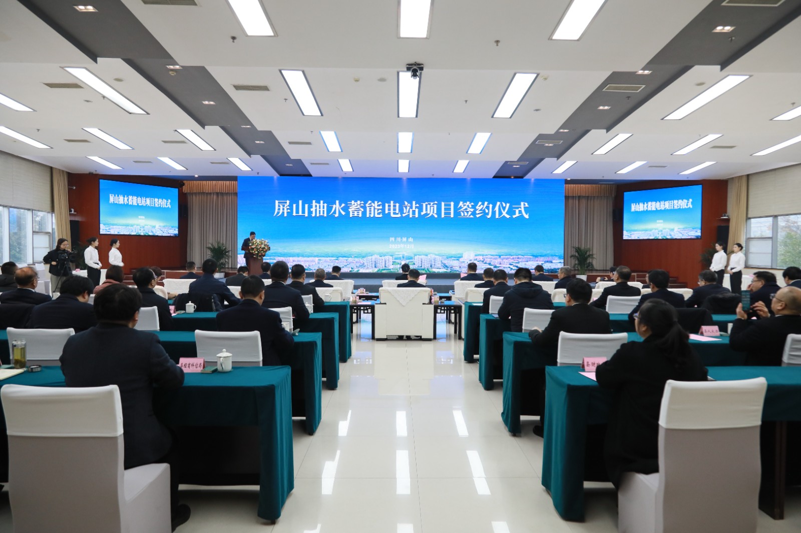 川投(攀枝花)新能源公司党支部书记、董事长王行仁;易倍体育 办公室副主任文晓春、史文韬;易倍体育 办公室主任郭梦夏;雅砻江水电开发公司工程管理部副主任吴火兵;葛洲坝集团西南分公司副总经理赵传明;葛洲坝集团三峡建设公司西南市场部副总经理杜远胜、卢艳彪;中国电建集团成勘院勘测设计分公司党委书记、副总经理、抽蓄院总经理刘亚洲;中国电建集团成勘院抽蓄院生产管理部主任、屏山抽蓄项目经理索慧敏;屏山县领导聂学杰、王莉梅、李劲松、李育生、许强、廖斌出席签约仪式。