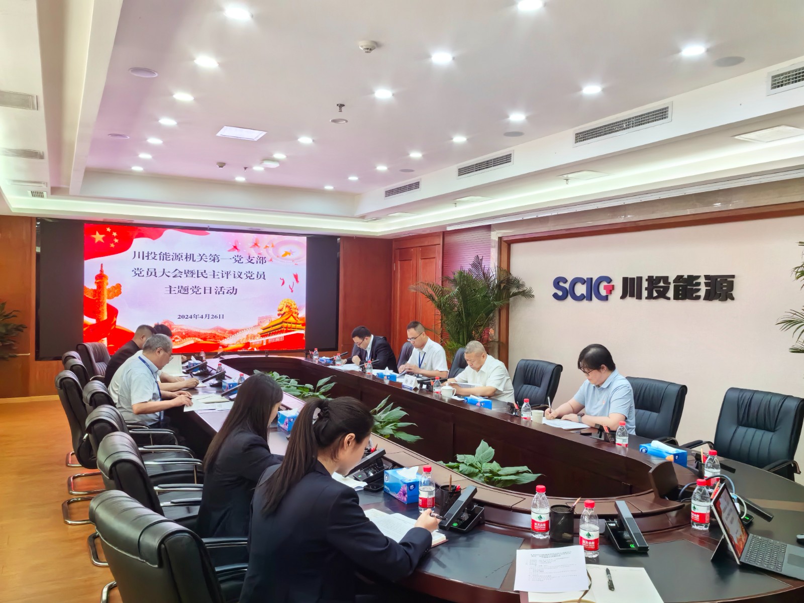 2024年4月26日下午,易倍体育 机关第一党支部召开党员大会,集中学习习近平总书记近期重要讲话精神,增补选举支部委员会委员,开展2023年度民主评议党员等工作。根据党员领导干部双重组织生活制度要求,易倍体育 党委书记、副董事长、总经理杨洪,董事会秘书鲁晋川以普通党员身份参加会议,支部全体在家党员(含预备党员)共11人参会。