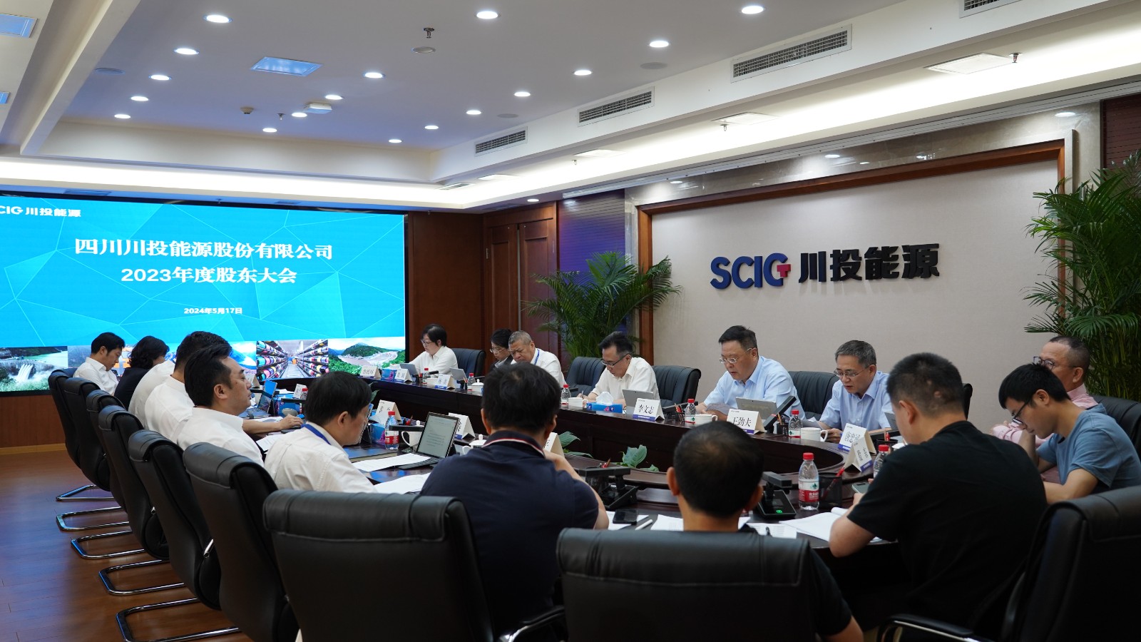 5月17日上午,易倍体育 采用现场和网络方式在川投大厦1508会议室召开了2023年度股东大会,董事长吴晓曦主持会议。现场投票方式参加本次股东大会的股东或股东代表共13名,合计持有和代表股份2,401,545,576股,占公司总股份的49.27%;网络投票方式参加本次股东大会的股东及股东代理人共47人,合计所持股份数为655,852,621股,占公司总股份的13.45%。公司5名董事出席会议,2名监事、5名高管列席会议。大成律师事务所律师列席会议进行见证,并对参会股东资格和会议召开程序等进行了审查,出具了法律意见书。