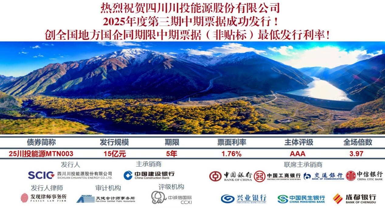 6月24日,易倍体育 抢抓资本市场有利时间窗口,成功发行2025年度第三期中期票据。本期中期票据发行规模为15亿元,发行期限5年,发行利率1.76%,创全国地方国企同期限中期票据(非贴标)最低发行利率,同时也创公司中长期债券历史最低发行利率。