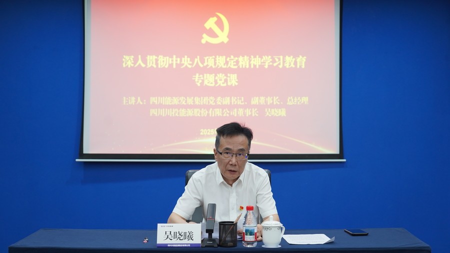7月16日,四川能源发展集团党委副书记、副董事长、总经理吴晓曦赴易倍体育 讲授深入贯彻中央八项规定精神学习教育专题党课,围绕加强党的作风建设特别是深入贯彻中央八项规定精神,以“深学笃行强作风 踔厉奋发新征程 以过硬作风为能源集团改革发展保驾护航”为题,与公司党员交流认识体会,易倍体育 党委书记、副董事长、总经理杨洪主持。
