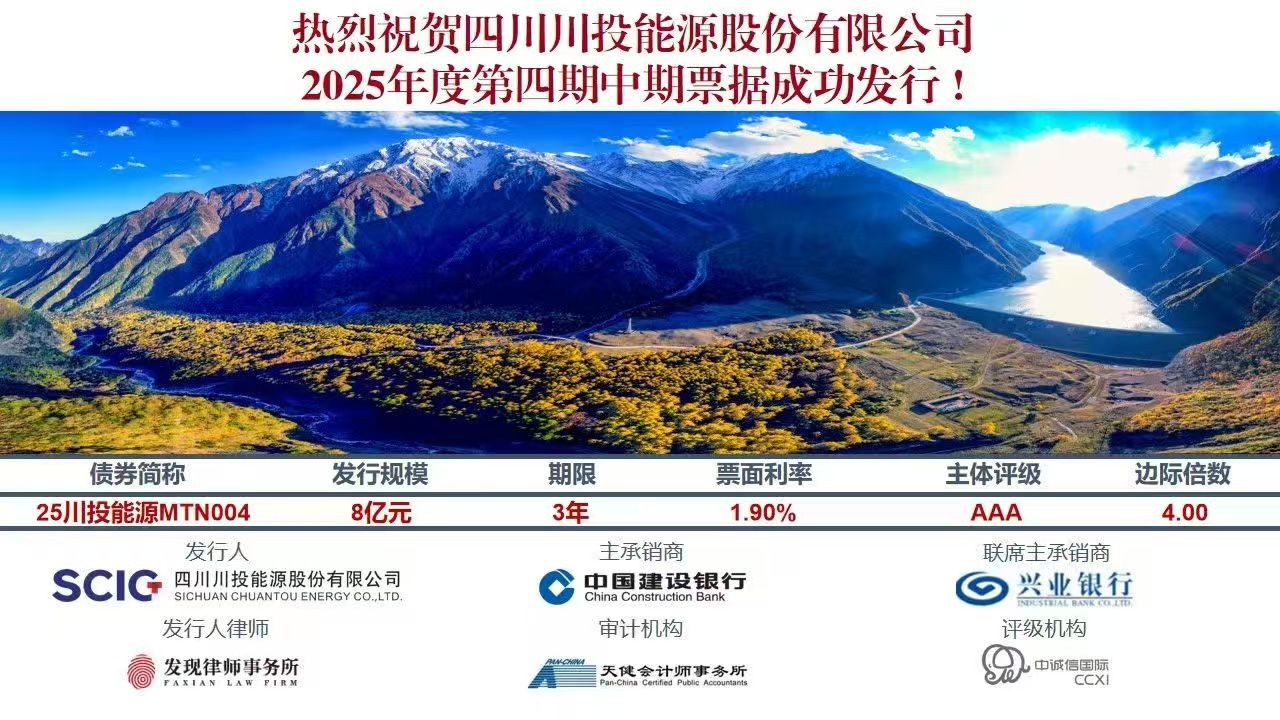 9月19日,易倍体育 成功发行2025年度第四期中期票据。本期中期票据发行规模为8亿元,发行期限3年,发行利率1.90%,边际认购倍数4.00倍,实现全额募集。