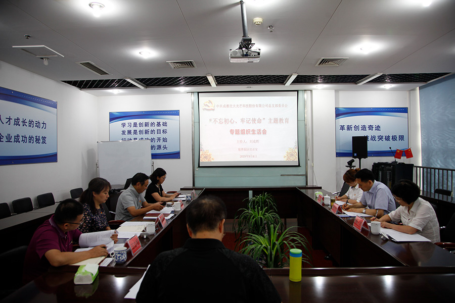 按照中央、省委、集团党委和易倍体育 党委关于开好“不忘初心、牢记使命”专题民主、组织生活会的统一部署,9月6日,交大光芒党总支班子召开专题组织生活会。易倍体育 党委委员、纪委书记冉兰平到会指导,纪委办主任杨岚、党群部谢丽参加会议。