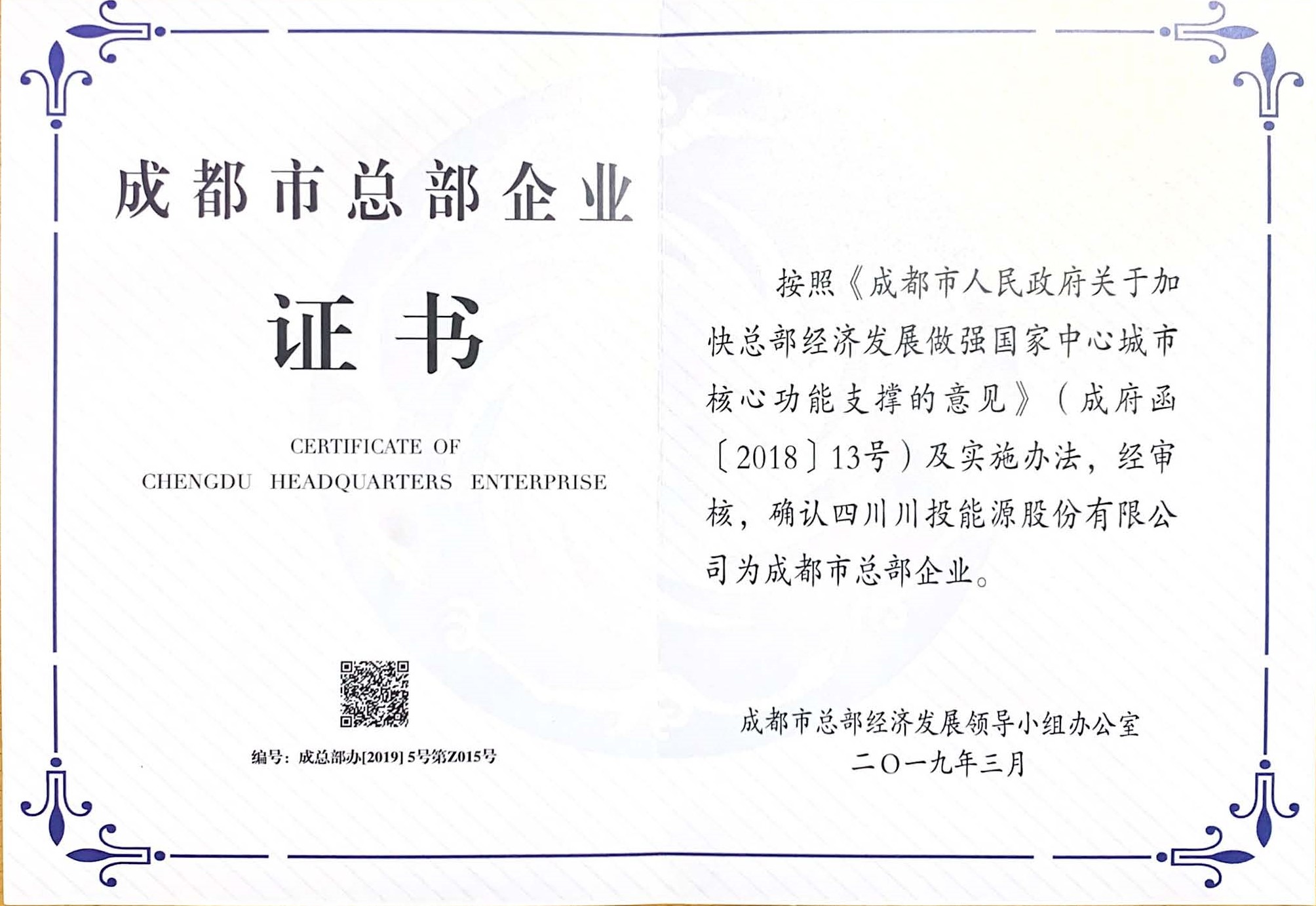 日前,从成都市总部经济发展领导小组办公室处传来喜讯,经审核确认,易倍体育 正式通过2018年成都市第二批总部企业资质认证授牌,获颁“成都市总部企业证书”,为2019年经营管理工作再添亮点。