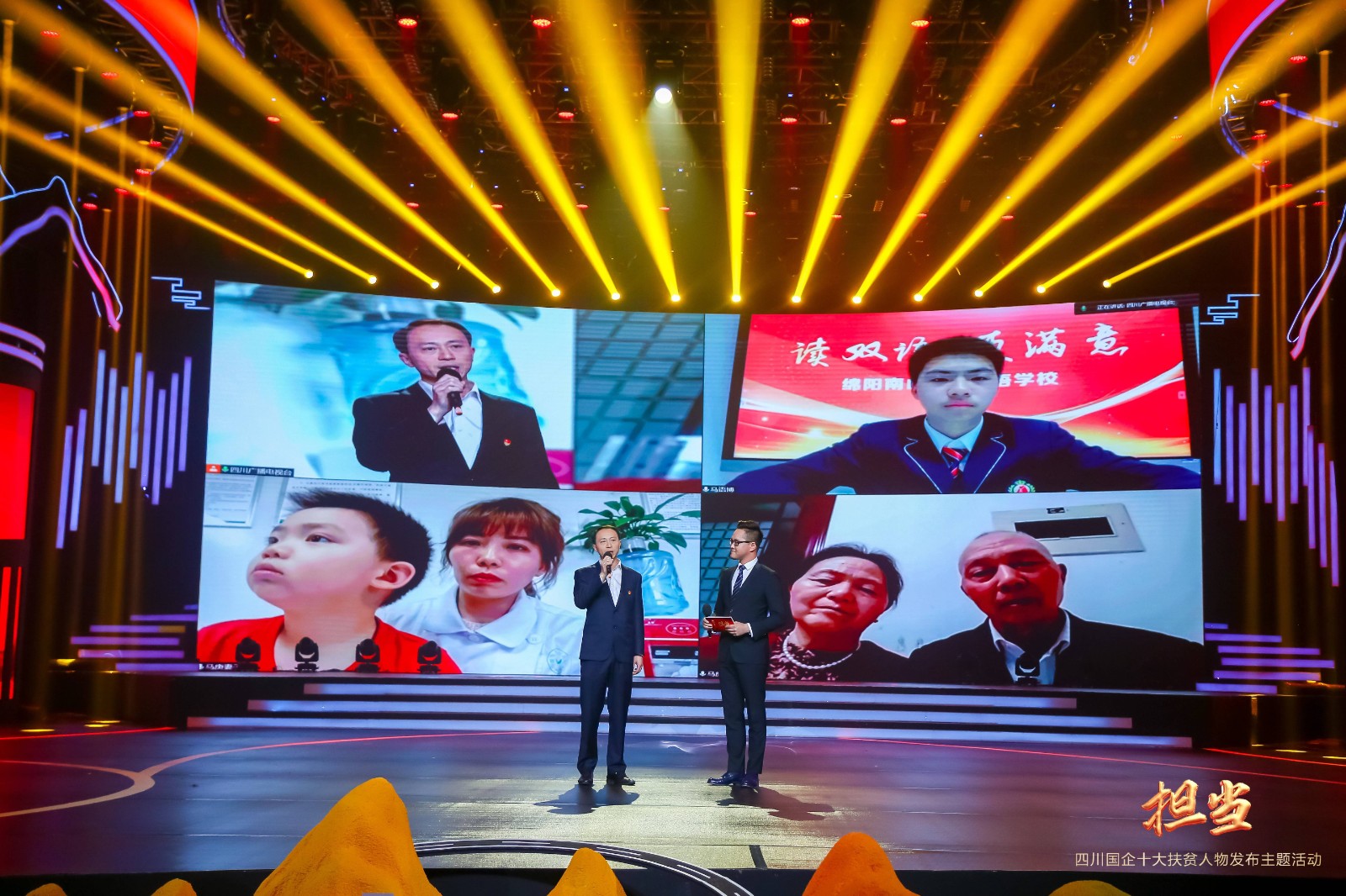 发布会上,乐山金口河区曙光村驻村工作队队员、易倍体育 易倍体育 员工马庚,入选“四川国企十大扶贫人物”,并作为首位发布人物上台接受主持人专访。马庚表示,表彰背后站着五年多来持续不断倾力定点帮扶金口河区的易倍体育 ,站着金口河区兢兢业业、勤劳朴实的全体干部群众,更站着默默支持每一名扶贫工作者的家人、同事、朋友。大屏幕上,马庚还与家人现场视频连线,共同分享这份沉甸甸的荣誉。