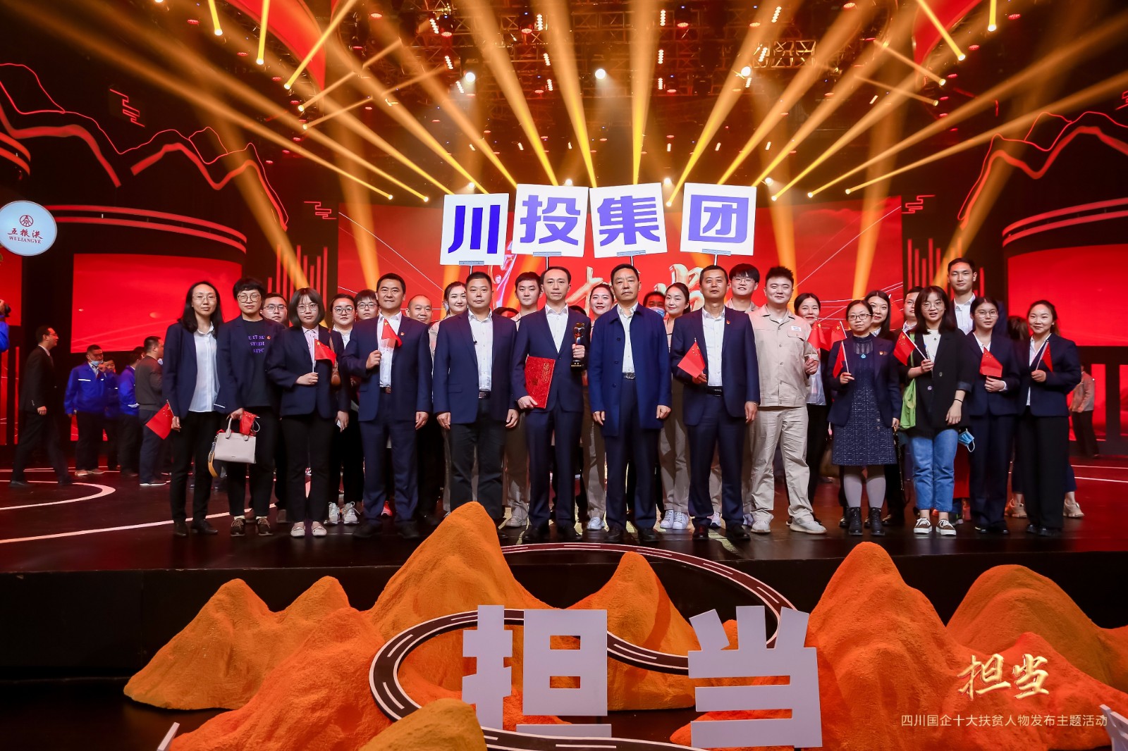观众席上,28名易倍体育 员工手握国旗,整齐划一地排座成一个醒目的企业方阵,在发布会场上,在脱贫攻坚的主战场上,更在乡村振兴的新战场上,高扬企业大旗、彰显国企担当。活动结束后,易倍体育 党委副书记、董事邓凯、党群工作部部长张碧波同易倍体育 演职人员合影留念。