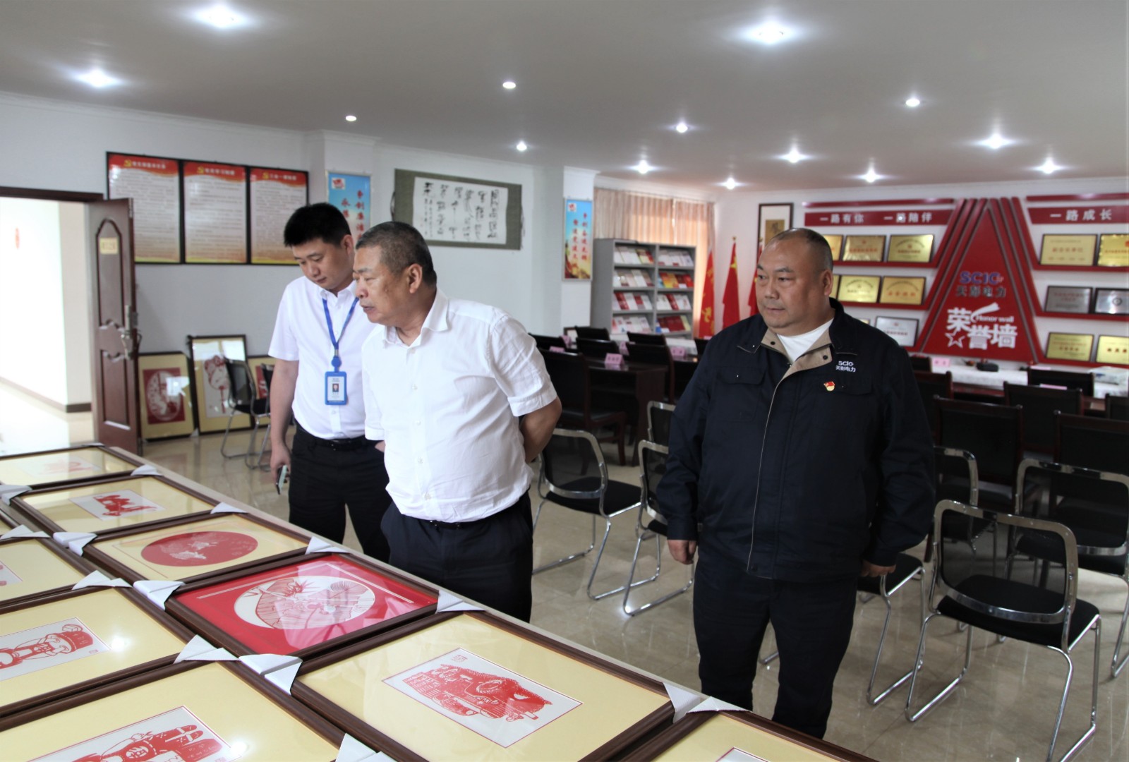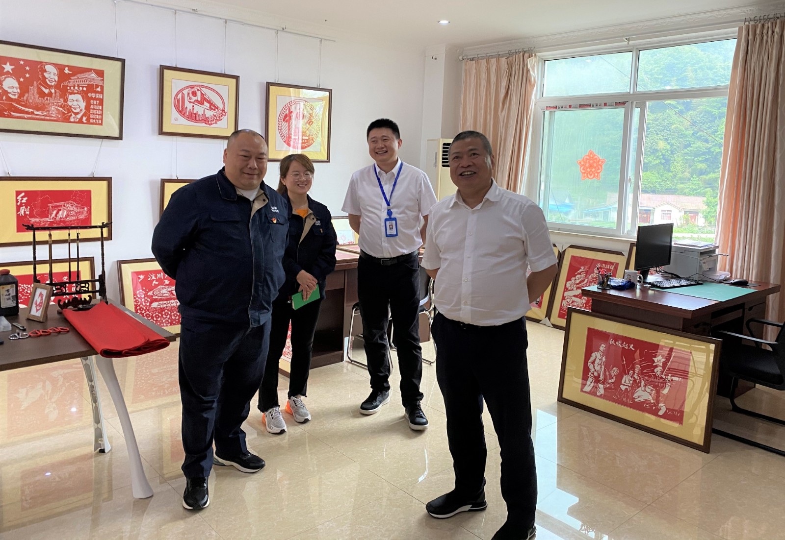 在“小庄工作室”,杨洪一行现场查看了剪纸作品创作进展情况,对公司领导班子及剪纸展相关工作人员的共同努力表示了充分肯定,对庄丛灿及其团队表示了亲切的慰问,并要求公司在后续工作中按集团公司指示,高位谋划、高效推动、高质量完成好剪纸展筹备工作。