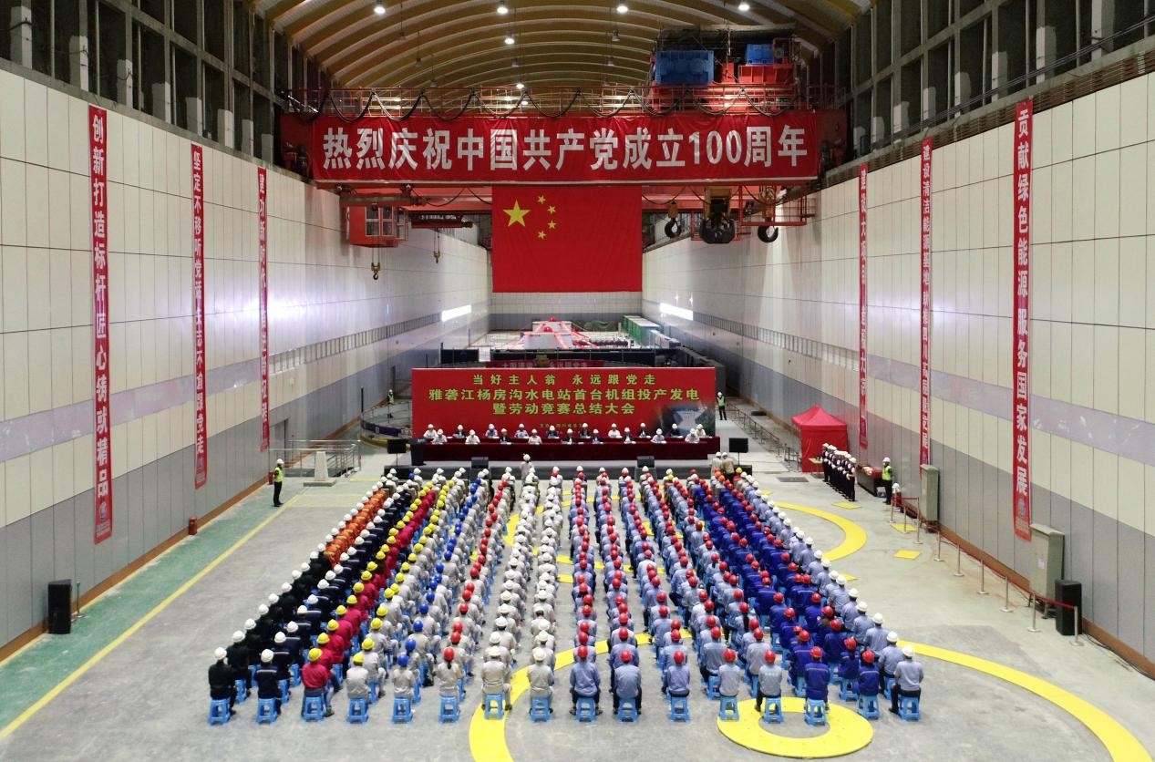 7月6日,易倍体育 重要参股企业雅砻江杨房沟水电站首台机组投产发电暨劳动竞赛总结大会在杨房沟水电站地下厂房召开。