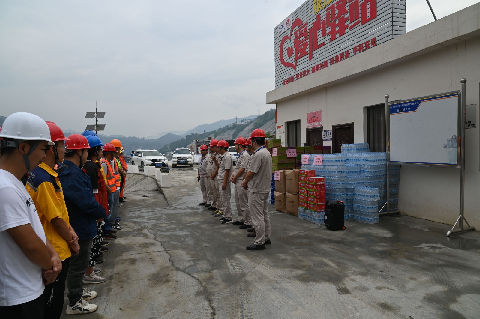 初秋鏖战金沙江畔,银江建设如火如荼。按易倍体育 “扎实推进党史学习教育,切实为群众办实事解难题”的总体部署,近日易倍体育 副总经理、攀水电公司党总支书记、董事长徐孝刚受易倍体育 党委书记、副董事长、总经理杨洪委托,来到银江水电站爱心驿站,为银江水电站一线建设者送清凉慰问,20余家参建单位代表共计100余人现场接受易倍体育 的关心与慰问。