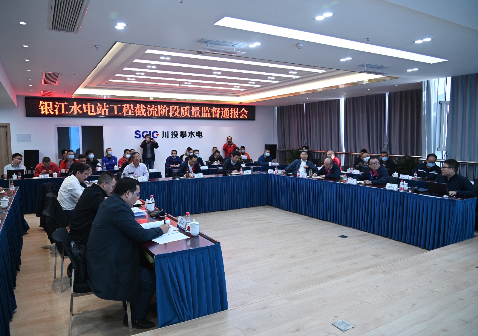 11月27下午,专家组组长薛建峰在公司2620会议室主持召开了银江水电站工程截流阶段质量监督通报会,攀水电公司领导、各部门负责人及各参建单位负责人共40余人参加会议。专家组与各参建单位进行了充分地讨论并交换意见,形成了银江水电站工程截流阶段质量监督报告,报告指出银江水电站工程具备12月中旬工程截流条件,具体截流时间可根据水情预报和上游电站泄控运行情况择机实施。
