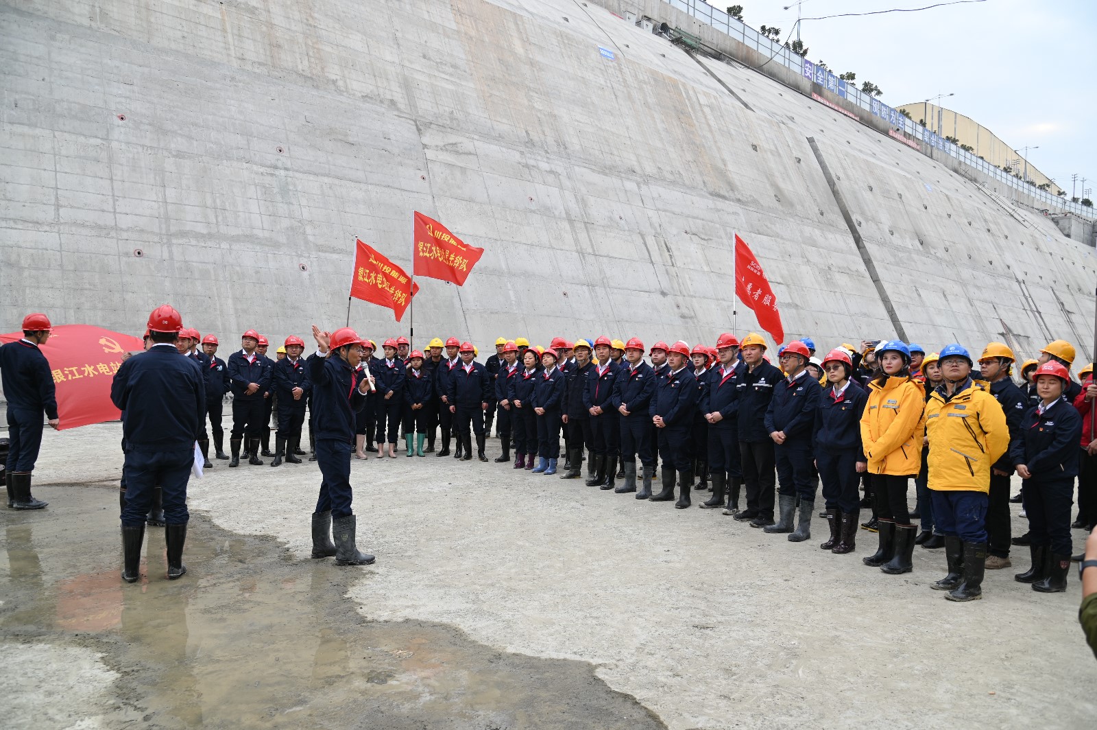 在银江水电站导流明渠过流和大江截流来临之际,为持续推进“我为群众办实事”活动走深走实,不断激励党员同志不忘初心、奋勇前进,12月2日,攀水电公司党总支组织开展了“我为银江办实事”主题党日活动。易倍体育 副总经理、攀水电公司党总支书记、董事长徐孝刚在导流明渠基坑讲授微党课,并带领大家开展工地大扫除,公司全体党员、职工及各参建单位联建支部党员共100余人参加本次活动。