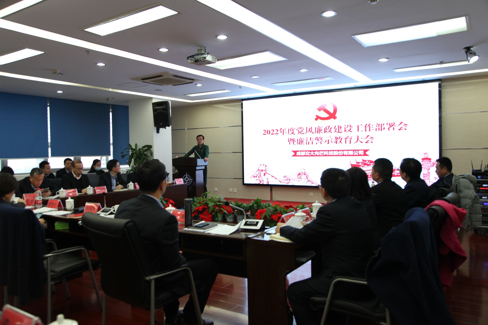 为进一步贯彻落实习近平总书记关于全面从严治党重要论述,推动党要管党、全面从严治党的政治责任层层压紧压实,1月25日,交大光芒召开2022年度党风廉政建设工作部署会暨廉洁警示教育大会。交大光芒党总支书记、总经理刘成辉主持会议并作警示谈话。