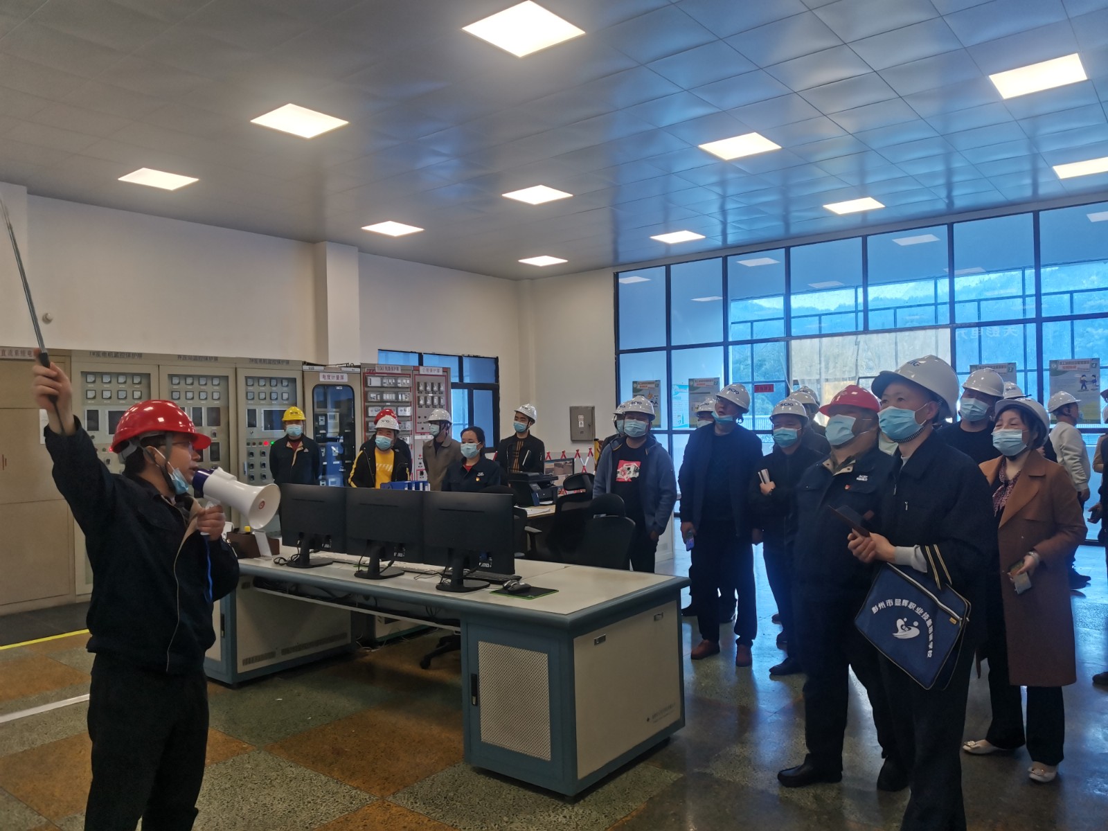 在严格作好人员疫情防控、安全防范措施并进行必要的安全注意事项交底后,参观人员规范有序进入了凤鸣桥车间生产现场,在公司安全管理人员的讲解下,全面了解了近年公司生产经营基本情况,公司安全生产标准化建设及“绿色小水电示范电站”建设等安全环保方面重点工作开展情况,并结合现场管理工作的重点难点对机电设备设施的日常管理、运行要求,安全生产规章制度、操作规程上墙,以及日常安全管理资料的规范记录、整理等方面经验做法进行了深入的互动和交流。随后在公司二楼会议室,参观人员共同观看了公司“绿色小水电示范电站”创建资料片和抗震救灾宣传片,并认真翻阅了公司安全环保、职业健康防护、应急管理、生产管理、委外工程项目安全管理等方面规章制度汇编和工作档案,通过逐一对照达到取长补短、互通有无、共同进步的目的。