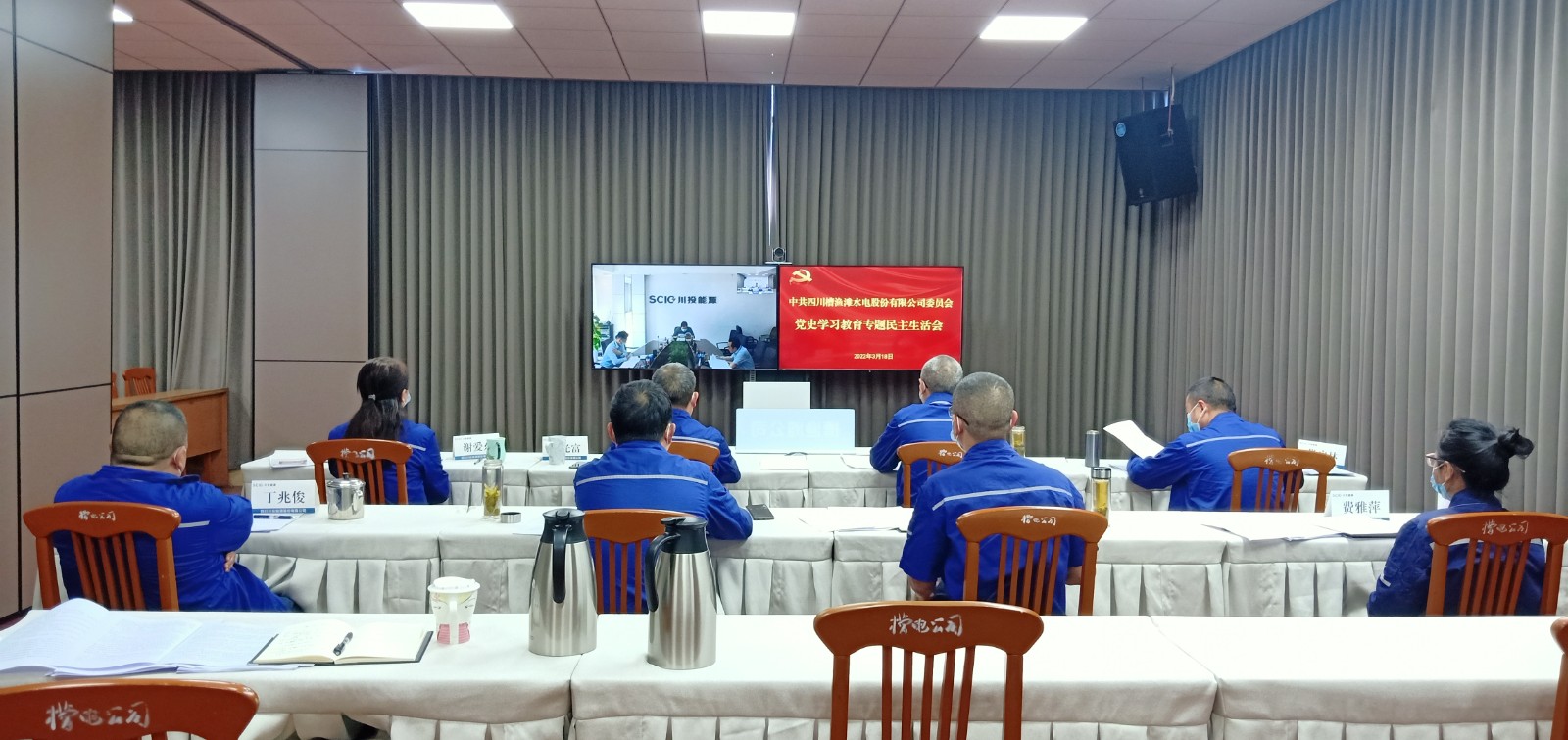 近日,槽渔滩公司党委按照易倍体育 党委和川投电力党委的统一部署和安排,召开了党史学习教育专题民主生活会。易倍体育 党委委员、纪委书记戴月洪,党群工作部李睿通过视频方式进行指导,会议由公司党委书记、董事长杨涛主持会议并作表态发言。