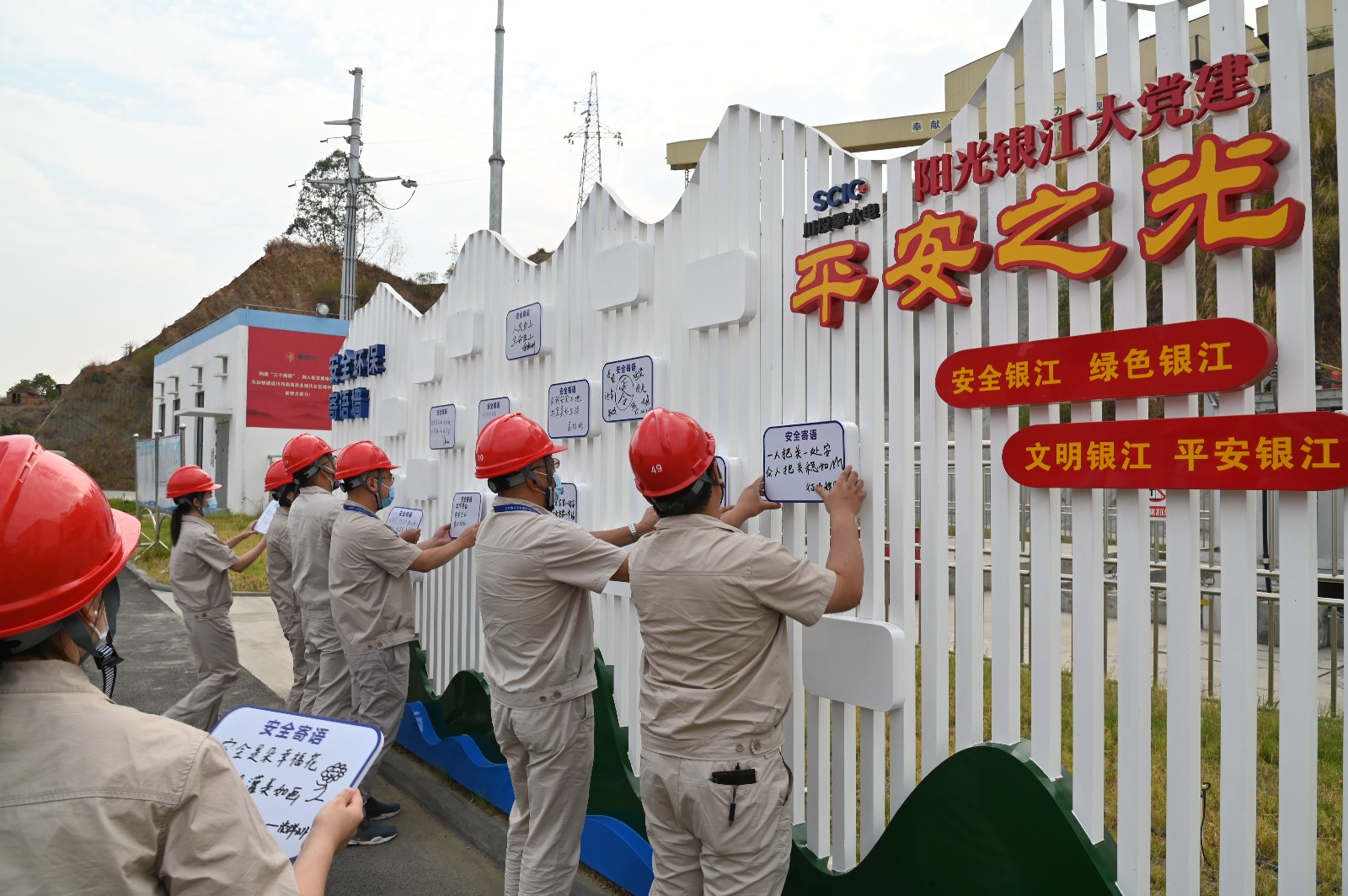 在“平安之光”安全寄语墙前,易倍体育 副总经理、公司党总支书记、董事长徐孝刚带头亲手写下了“安全寄语”,一条条寄语承载着大家对银江水电站平安建设的庄重承诺和公司健康发展的美好祝愿。在“学习之光”学习园地,大家再次学习了安全十大禁令,号召全体党员以身作则,带头践行,实现从要我安全向我要安全的转变。