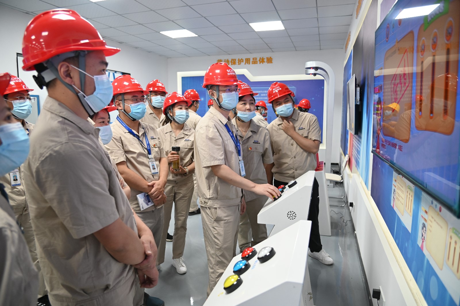 随后,全体人员在公司安全体验馆进行了沉浸教学,该体验馆面积约700平方米,设有安全带、有限空间、机械伤害、平衡木、护栏推倒、安全帽撞击、高处坠落、触电、灭火器使用、医疗急救、安全事故VR体验等体验项目,包含劳动防护用品穿戴及使用、安全标识及工程机械认知、风险辨识、安全知识和应急处置等教育培训内容。本次安全体验教育培训通过展板展示、实景模拟、案例警示、知识答题、亲身体验等方式,将施工现场常见的危险源、危险行为与事故类型具体化、实物化,充分展示工程建设需要学习掌握的安全知识和技能。