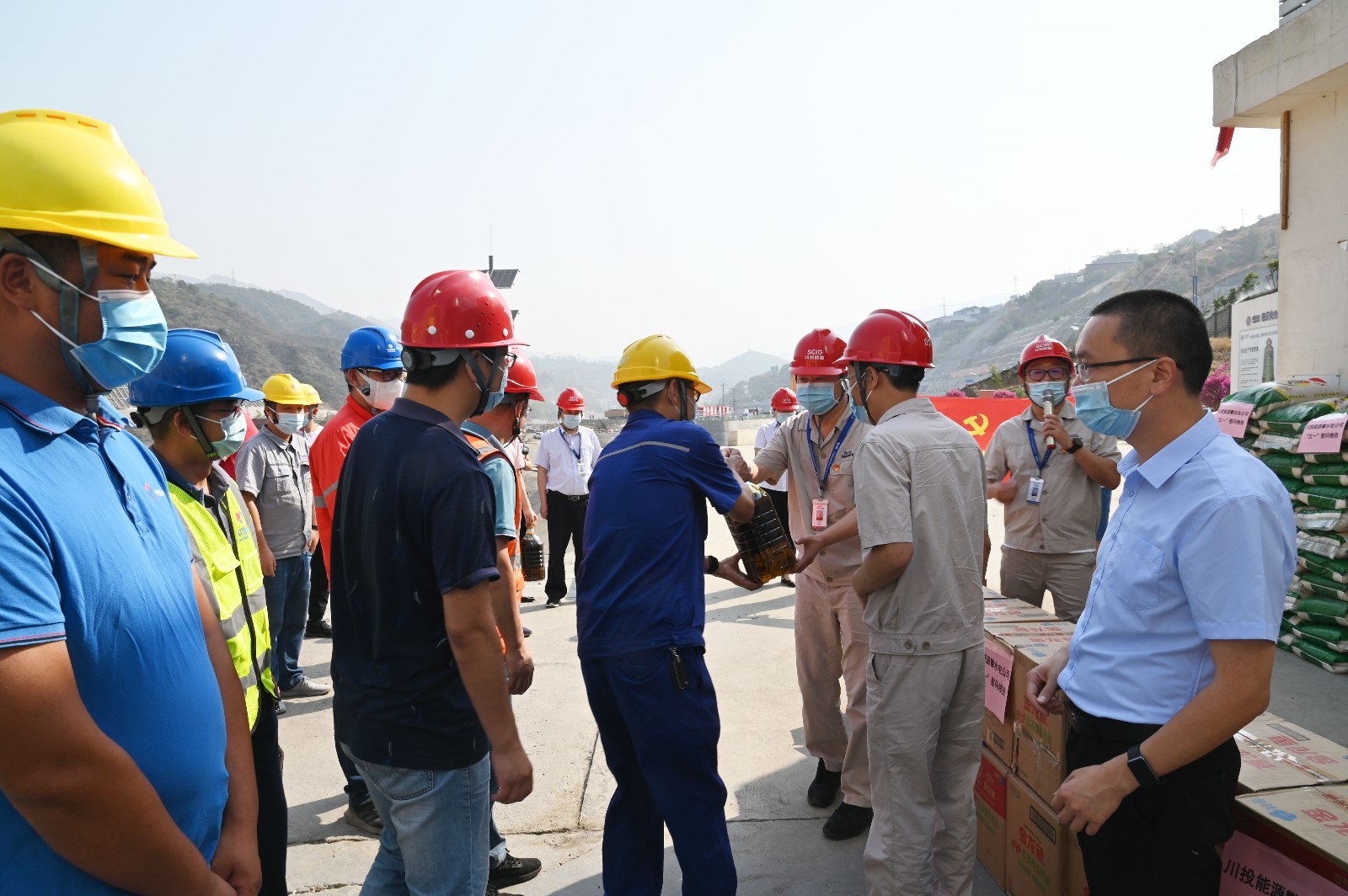 “五一”国际劳动节前夕,4月30日上午,易倍体育 副总经理、攀水电公司党总支书记、董事长徐孝刚带队来到银江水电站爱心驿站,慰问冒着高温酷暑战斗在银江水电站工程一线的建设者们。慰问活动由公司党总支委员、董事会秘书、工会主席邓勇主持,公司在攀领导、党员先锋队及志愿者服务队共20余人参加慰问。