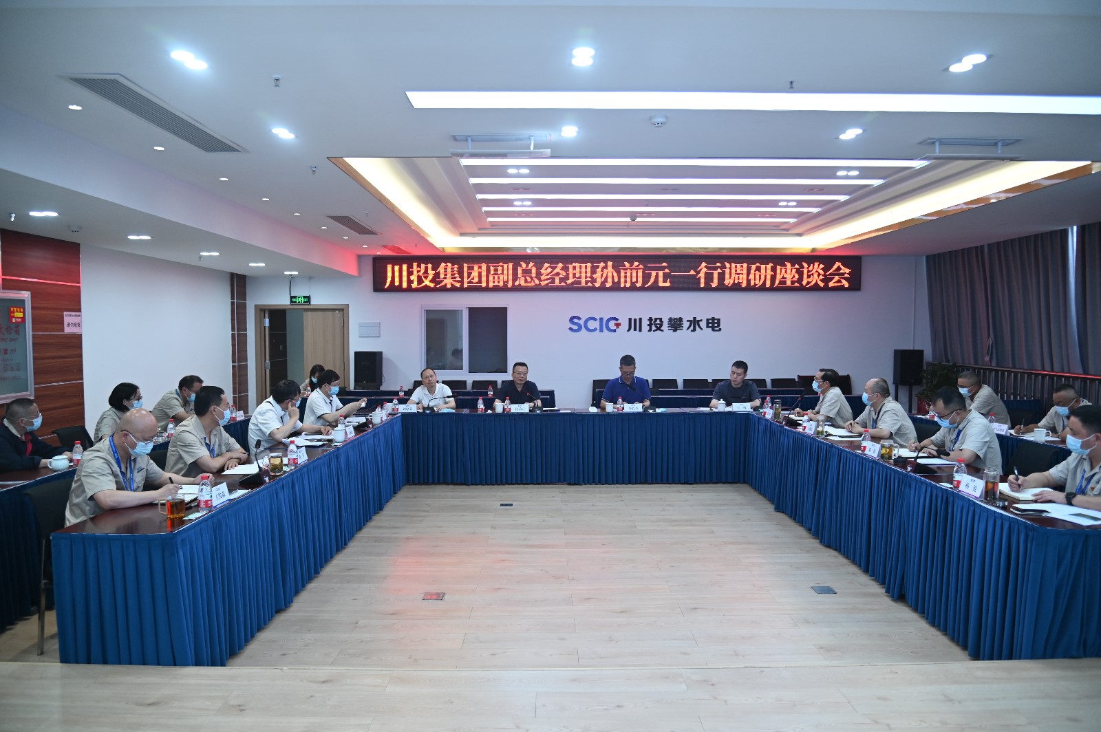 当天下午,孙前元一行在攀水电公司2620会议室召开了座谈会,会议由李胜章主持,杨平、袁成明以及攀水电公司领导班子、各部门负责人参加会议。徐孝刚详细汇报了银江水电站项目工程建设、攀新能源公司工作进展情况,以及下一步工作打算。