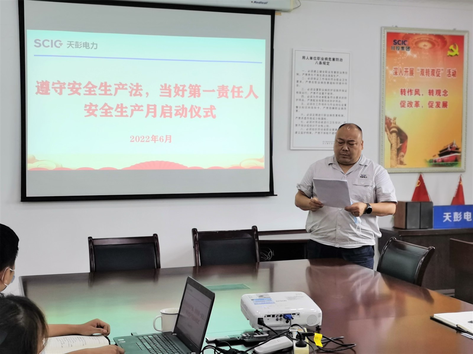 今年6月是第21个全国“安全生产月”,为深入贯彻习近平总书记关于安全生产重要论述,严格落实党中央、国务院和省委省政府关于安全生产的决策部署,近日,以普及安全生产法、增强安全生产法治意识、落实安全生产责任制为目的的“安全生产月”活动在天彭电力隆重拉开帷幕。