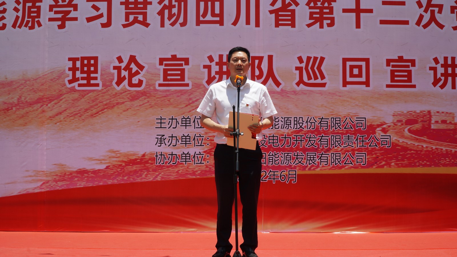 宣讲在群山环绕、瓜果飘香、彩旗飘飘的电厂职工运动场拉开帷幕。在开场致辞中,冉兰平代表易倍体育 党委向默默坚守在甘洛县玉田电厂的每一位干部职工表示感谢,也向电厂无私奉献、艰苦奋斗,“舍小家为大家”的精神表示致敬。他指出,本次宣讲旨在向电厂全体干部职工宣讲习近平总书记来川视察重要讲话精神和中国共产党四川省第十二次党代会精神,切实推动省十二次党代会精神在基层落地生根。他要求,要学习领会好、宣传宣讲好、贯彻落实好省第十二次党代会精神,将其作为当前和今后一段时期重要政治任务,进一步增强“四个意识”、坚定“四个自信”、做到“两个维护”,为打造“国内一流清洁能源上市公司”,推动治蜀兴川再上新台阶不懈奋斗,以积极饱满的实际行动和优异成绩迎接党的二十大胜利召开。