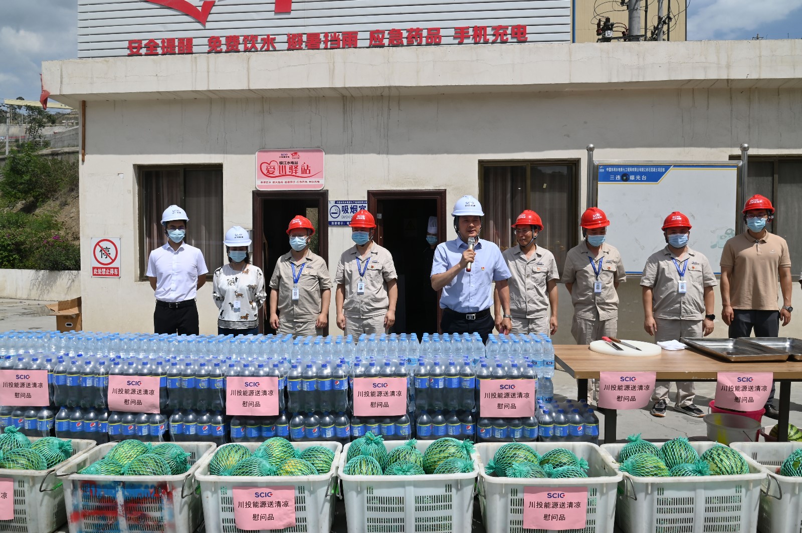 冉兰平一行在银江水电站“爱心驿站”集中慰问了长江设计公司、贵阳院监理、二滩建设监理、华东院监理、水电五局、水电七局、水电十局、四川路桥等主要参建单位,为大家送上西瓜、矿泉水、清凉饮品等防暑降温物资,让一线建设者们在酷暑中感受到了亲切的关怀和舒心的凉意。