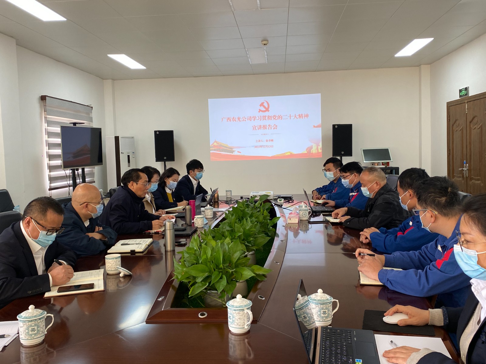 为进一步推动党的二十大精神走深走实,12月14日上午,易倍体育 副总经理,攀水电党总支书记、董事长,攀新能源董事长,广西农光董事长徐孝刚一行赴广西农光公司作党的二十大精神专题宣讲。攀水电党总支学习贯彻党的二十大精神宣讲组成员、广西农光公司全体党员、干部职工共20人参加宣讲会,会议由攀新能源公司副总经理杨岚主持。