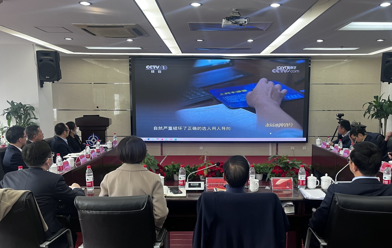 会议结束后,全体参会人员观看了中央纪委国家监委宣传部与中央广播电视总台联合摄制的电视专题片《永远吹冲锋号》第一集《第二个答案》。