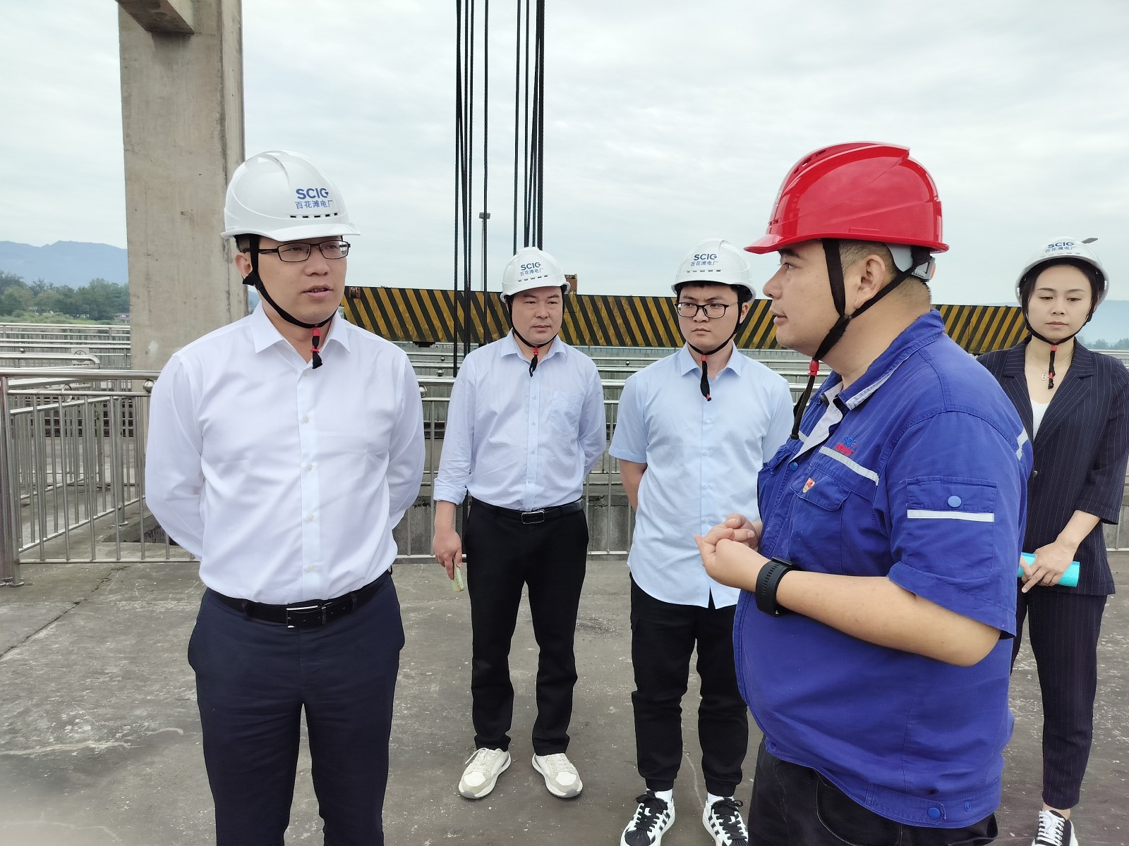6月9日上午,四川能投金鼎产融控股集团有限公司(以下简称“金鼎集团”)党委委员、副总经理吴海军一行到访川投电力所辖百花滩电厂,双方围绕水电站生产运行管理、人员结构组成等事项进行座谈交流。川投电力党委副书记、总经理蔡承德接待来访。