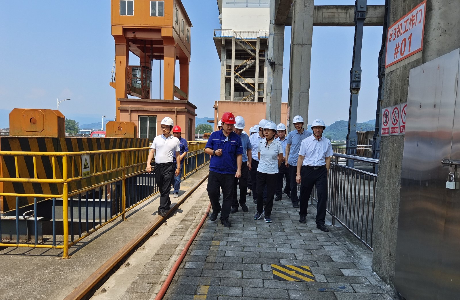 祝春秀一行实地察看大坝前池、泄洪冲砂闸等水工建筑物,听取了电厂防汛减灾、生态流量下泄和漂浮物打捞工作情况汇报,对电厂相关工作给予充分肯定,并根据视察情况提出意见和建议。