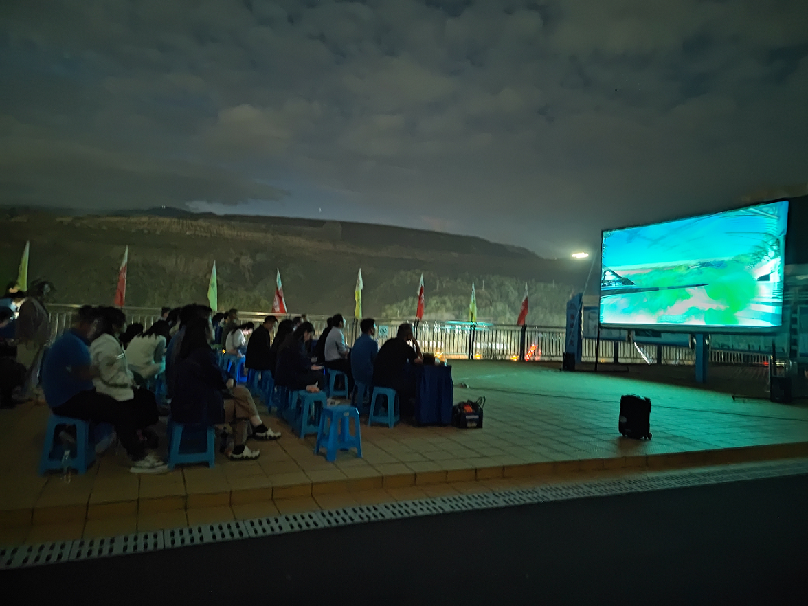 活动下午,银江青年志愿者们早早来到大党建宣传阵地信仰之光广场,洗好水果,擦净护栏,摆好桌椅,协助工作人员搭好幕布。随着夜幕降临,水电五局、水电七局、广东源天等项目部的工友们有序来到广场,大家褪去一天的疲惫,坐在和煦的晚风中,一边享用水果,一边观看精彩的电影,荧幕的亮光映射到每个人的笑脸上。大家精选了与工程建设息息相关的大型纪录片《厉害了!我的国》,这部影片展现了中国近几年在科技发展、经济建设、乡村扶贫、生态文明等多个方面取得的非凡成就,以“大主题与小切口”“高大上与接地气”有机结合的方式,生动形象地带大家领略了人类历史上最大的射电望远镜FAST、全球最大的海上钻井平台“蓝鲸2号”“墨子号”量子通信卫星以及中国桥、中国路、中国车、中国港等超级工程,体裁多样、视野开阔,让观看的工友们叹为观止,赞叹不已。