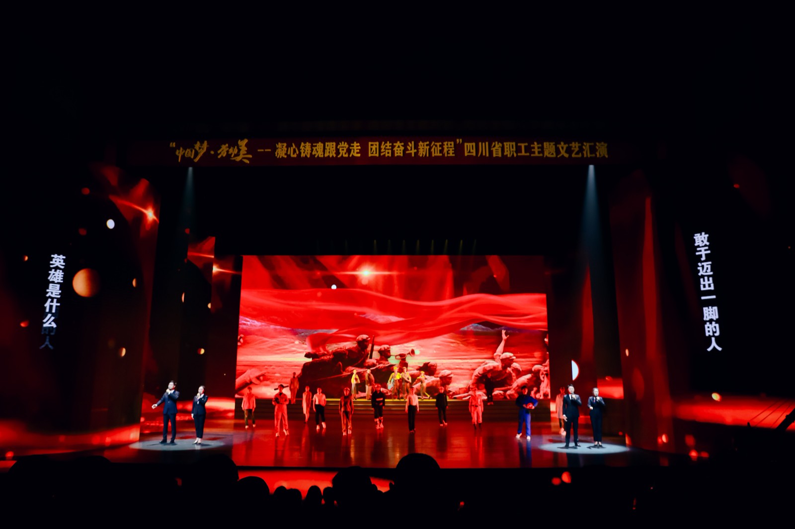 11月22日晚,“中国梦•劳动美——凝心铸魂跟党走 团结奋斗新征程”四川省职工主题文艺汇演在成都华侨城大剧院举行。易倍体育 工会选送的诵读作品《新时代的英雄》在舞台上精彩亮相。该节目曾荣获四川省第二届职工诵读比赛金奖,本次经过层层选拔,由易倍体育 作为主创班底,联合川投信产、资阳口院选送优秀选手共同呈现。