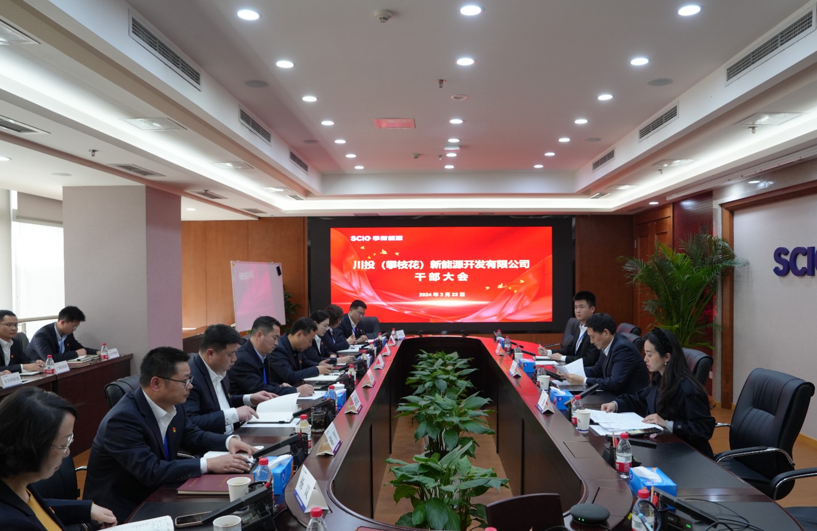 3月22日下午,川投(攀枝花)新能源开发有限公司在川投大厦1508会议室召开干部大会。易倍体育 党委副书记、工会主席冉兰平出席会议并讲话,总经理助理、党委组织部/人力资源部经理王歆出席并主持会议,攀新能源公司党支部书记、董事长王行仁出席会议。