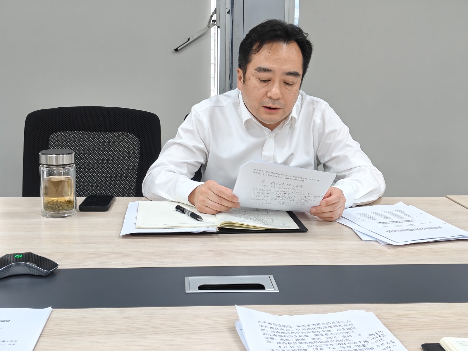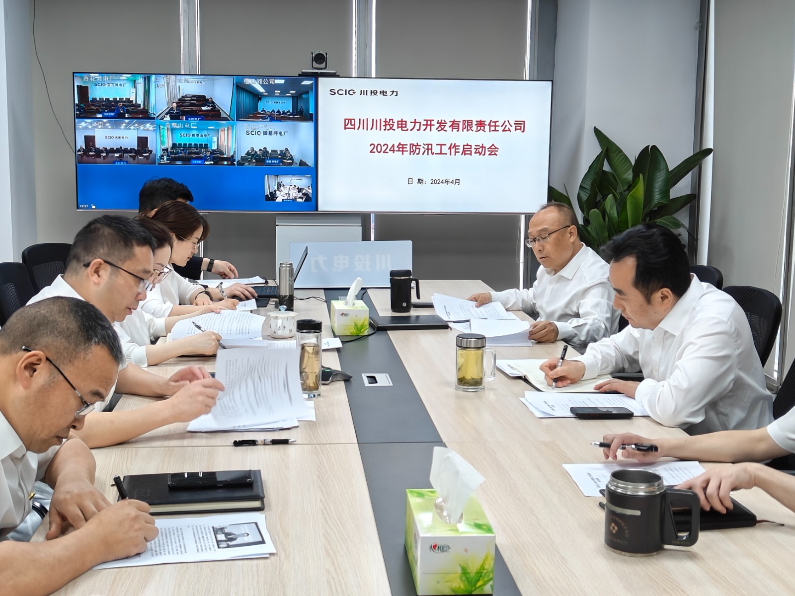 2024年4月23日上午,川投电力召开2024年防汛工作启动会,公司党委书记、董事长、防汛领导小组组长杨涛,党委副书记、总经理、防汛领导小组常务副组长蔡承德出席并讲话,副总经理、防汛领导小组副组长、防汛办公室主任王伟主持会议。