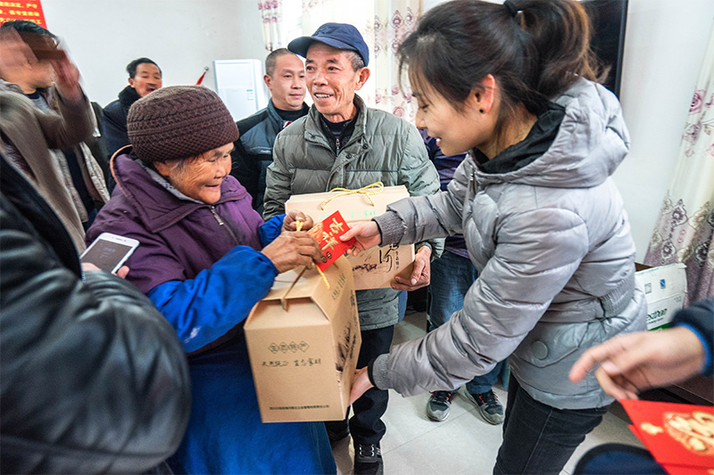 茶话会后,朱莉送上了田湾河公司支援村委会的办公设备,并对在场贫困户发放代表喜庆、祝福的新年红包和慰问品。随后在村党支部曾书记带领下,田湾河公司一行人实地上门走访部分行动不便未能参加活动的贫困户,关心他们的生活起居、衣食住行,并帮助他们打扫卫生、贴春联、送祝福。一片忙碌的景象,让贫困户提前感受到节日的喜庆。