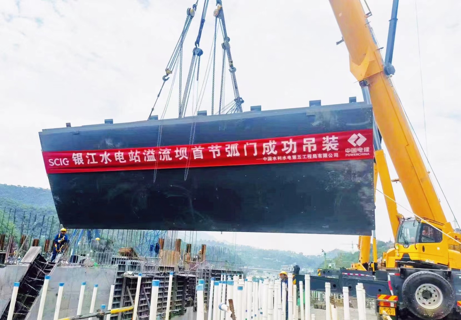 7月22日,正值银江水电站开工建设五周年纪念日之际,工程建设再传捷报,首节弧形工作门吊装成功,标志着银江水电站闸门安装高峰期正式拉开序幕。