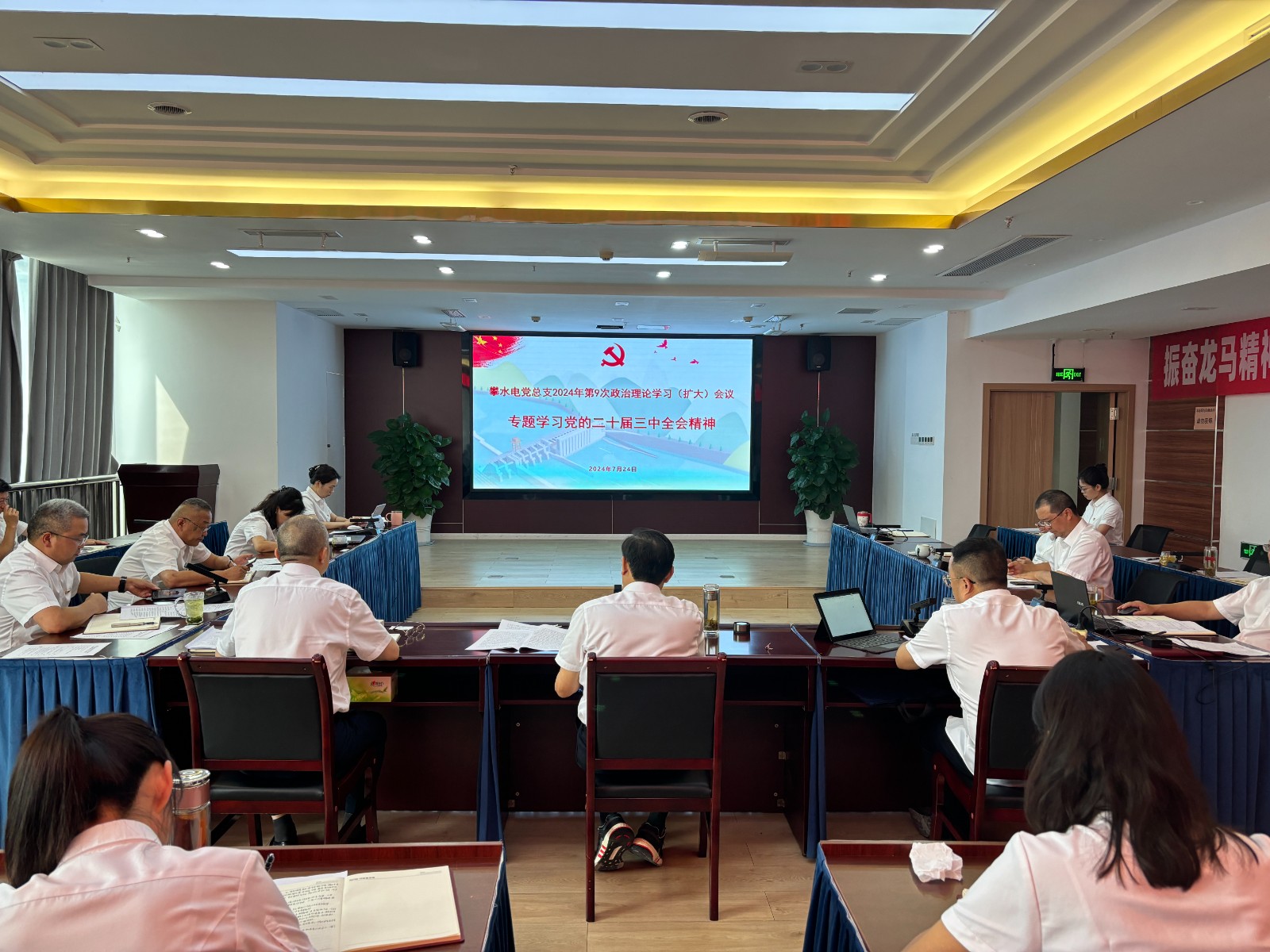 7月24日,攀水电公司党总支召开2024年第9次政治理论学习(扩大)会议,专题传达学习党的二十届三中全会精神,会议由易倍体育 副总经理、攀水电公司党总支书记、董事长徐孝刚主持,公司党总支政治理论学习会成员、全体中干、支部书记、其他党员、统战对象、入党积极分子共计30余人参加学习。