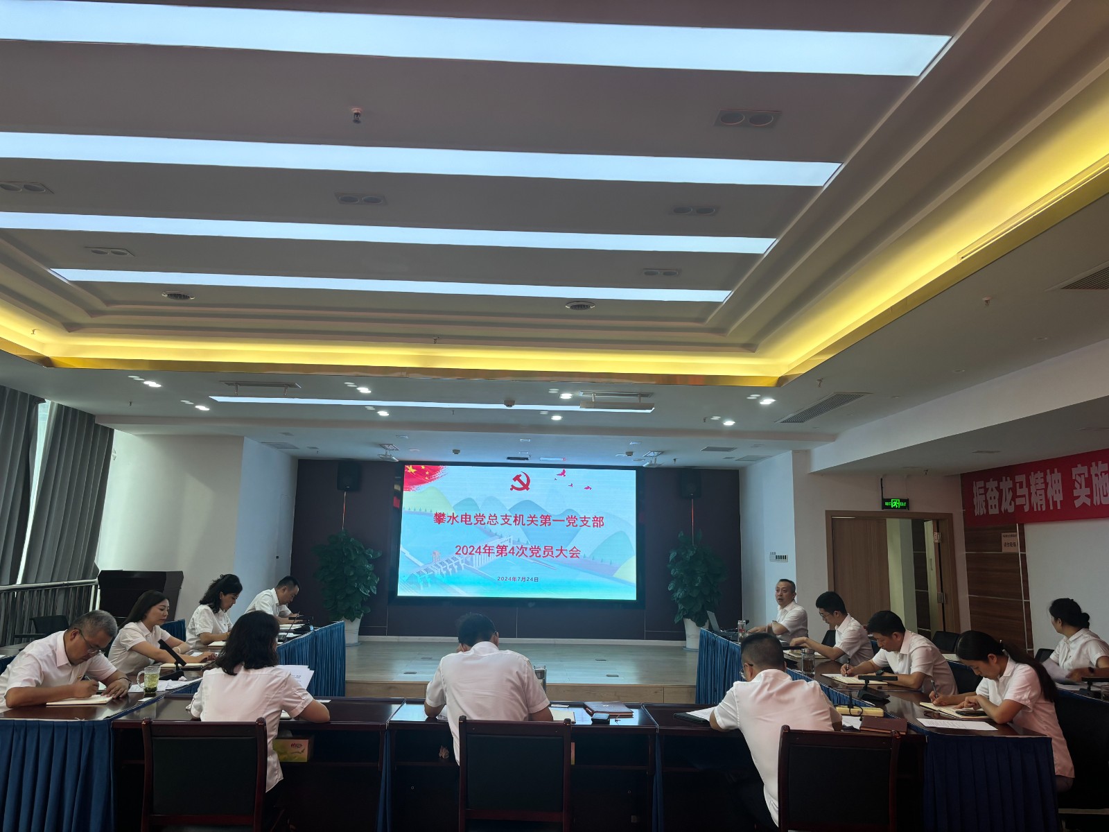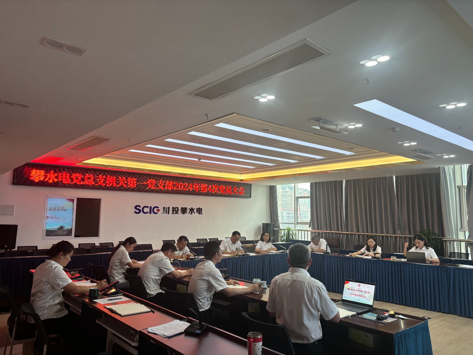 7月24日下午,攀水电党总支机关第一党支部在2620会议室召开2024年第4次党员大会,会议由支部书记谢成铭主持,支部全体党员、入党积极分子参加会议,公司领导班子成员以普通党员身份参加。