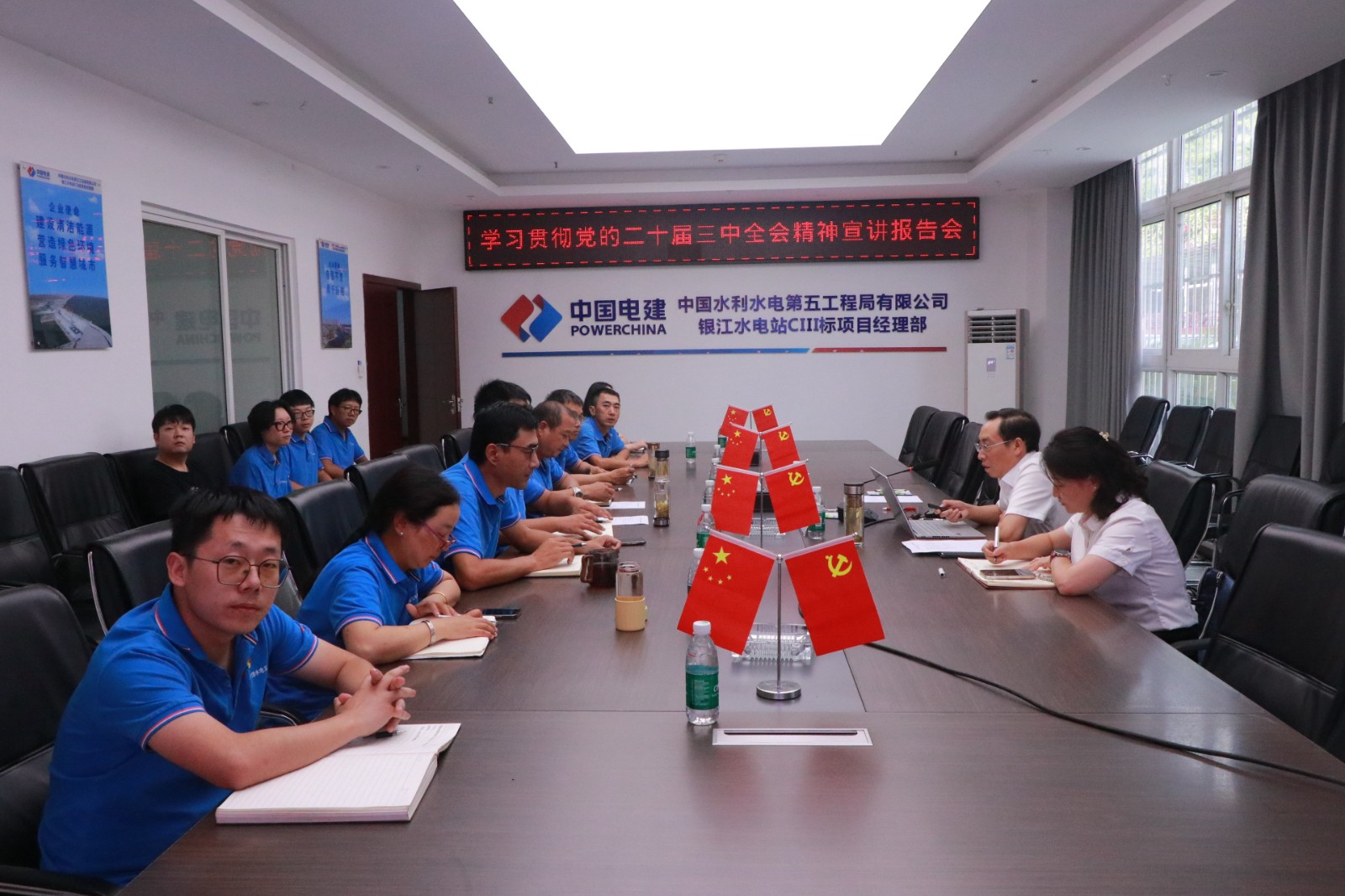 为深入学习宣传贯彻党的二十届三中全会精神,按照易倍体育 党委的部署和攀水电公司党总支的安排,近日,易倍体育 副总经理、公司党总支书记、董事长徐孝刚到联系指导支部水电五局银江项目党支部进行党的二十届三中全会精神专题宣讲。水电五局银江项目党支部全体党员、入党积极分子、青年职工代表共计15人参加此次宣讲报告会。