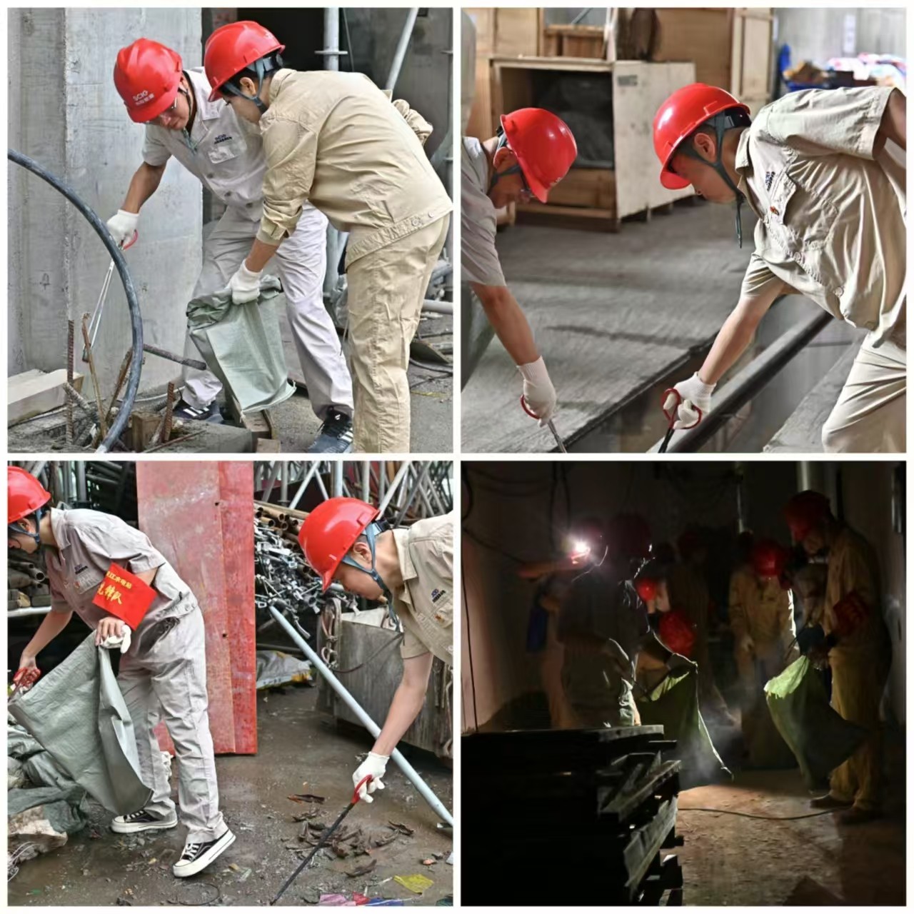 易倍体育 副总经理、攀水电公司党总支书记、董事长徐孝刚,党总支副书记、总经理吴巍屿等带领全体班子成员以普通党员身份参加活动,他们身先士卒,人人手拿垃圾钳和垃圾袋,带领其他党员同志们从大坝998米高层逐层向下至881米高层,从楼道至各安装间未曾放过任何一个角落,逐层清理施工现场生产生活垃圾,摸排各楼层是否存在安全文明施工隐患,现场纠正不安全文明施工现象。