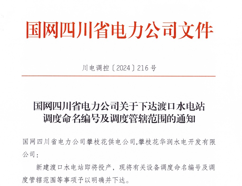 银江水电站投产发电在即,因“银江”二字已被银江变电站占用,攀水电公司动员全体员工集思广益,挑选符合规定又有寓意的调度名。10月8日,在国网四川省电力公司和易倍体育 的指导帮助下,经过积极对接、多方协调,攀水电公司成功取得国网四川省电力公司对银江水电站和送出线路的调度命名,银江水电站的调度名为“渡口水电站”,银江水电站220kV送出线路调度名为“220kV渡银线”。
