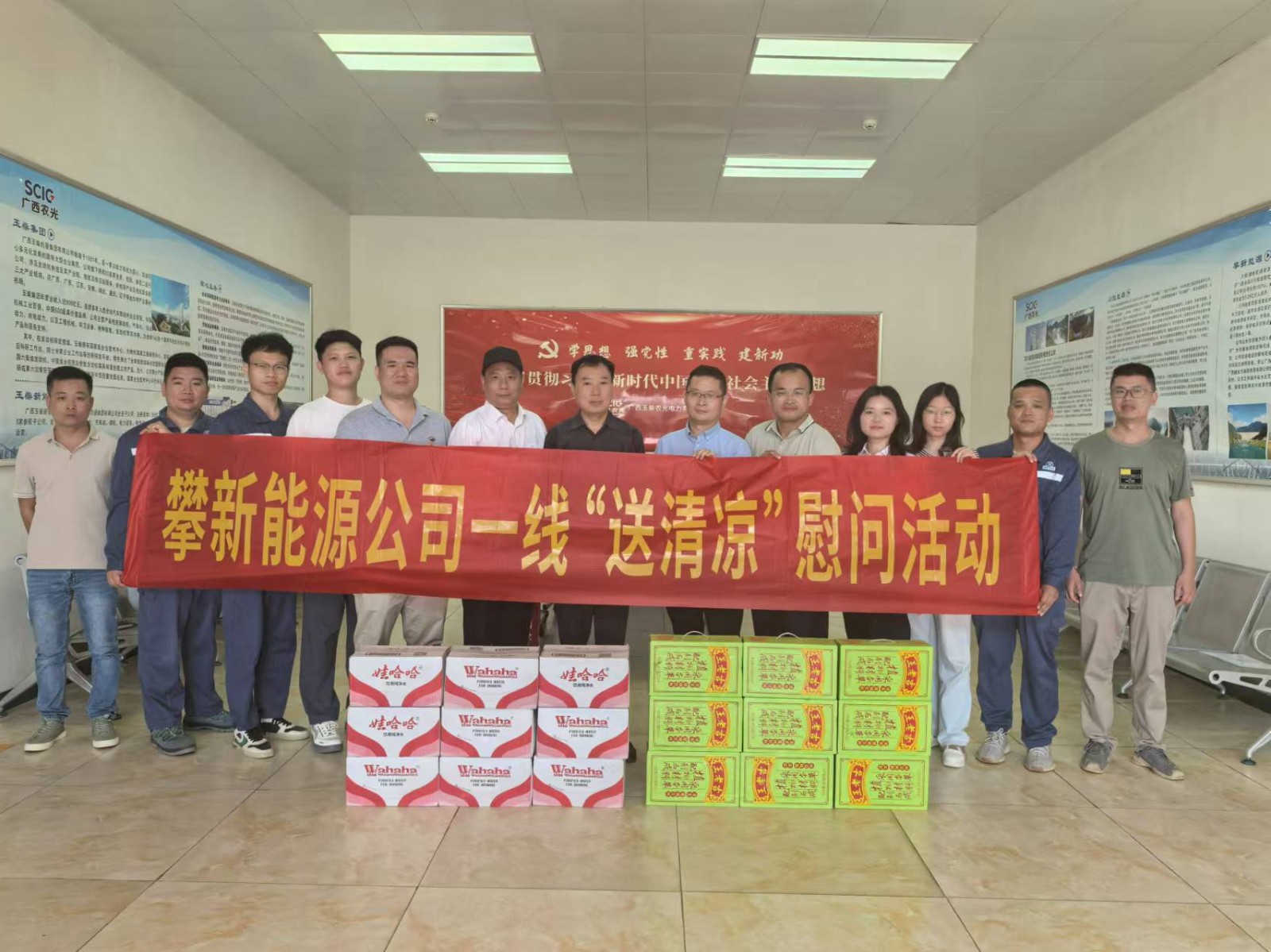 炎夏送清凉,温情暖人心。攀新能源公司为进一步做好防暑降温工作,深切关怀在项目现场作业的一线职工职业健康,确保现场安全生产,组织开展了“送清凉”一线慰问活动。攀新能源公司党支部委员、总经理周军带队“送清凉”慰问小组,依次前往广西农光公司、桂平光伏电站、广西融安公司光伏发电站项目现场,为辛勤工作的劳动者们送去清凉与关怀。