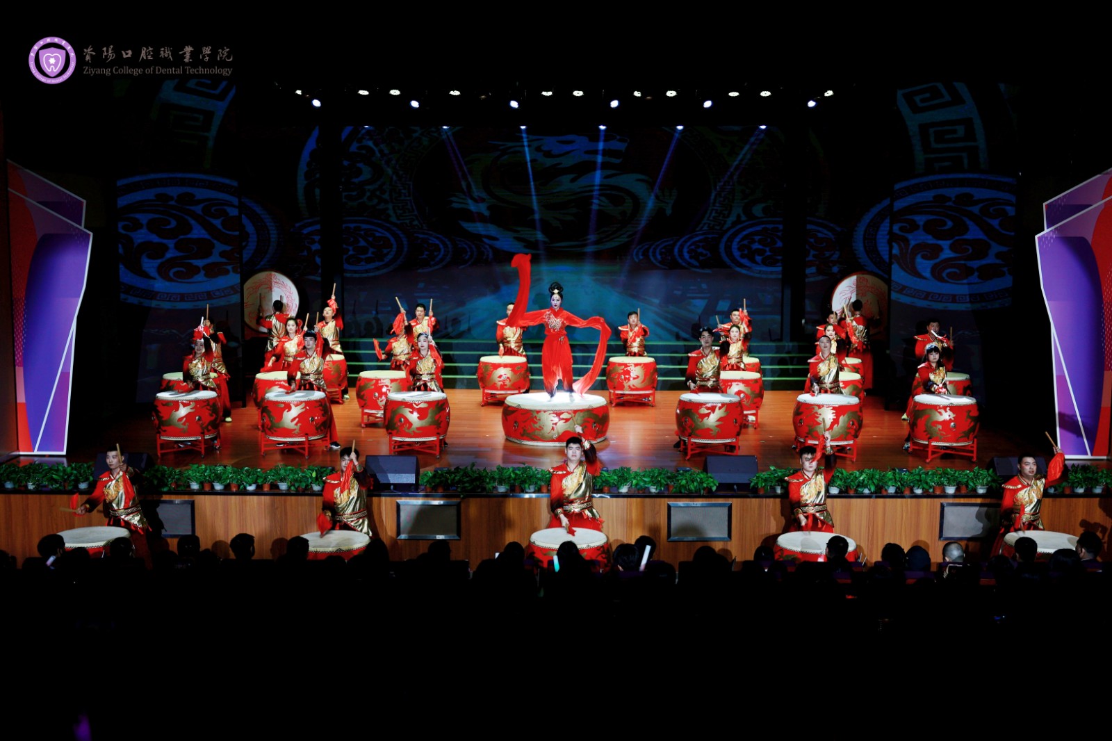 10月16日,天彭电力代表易倍体育 参加资阳口腔职业学院成立五周年庆祝大会暨文艺汇演活动,26名队员以饱满的热情和精湛的技艺,将一场气势恢宏、震撼人心的大鼓舞《盛世凯歌》呈现在观众面前,作为整台晚会一大亮点瞬间点燃全场气氛,赢得了集团领导和学院师生的高度赞扬。