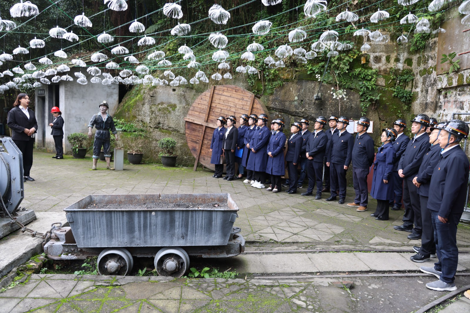“六个课堂”实起来。本次培训将川投电力党委“六个课堂”融入学习全流程。既有寻根溯源的初心课堂,也有震撼感人的先锋课堂;既有应急救援的实操课堂,也有感受红色文化的情景课堂。在嘉阳煤矿第一号矿井黄村井,学员现场聆听《我为祖国献宝藏,燃烧精神永不灭》微党课,深入了解煤矿发展历史、开采运输方式,实地感受战天斗地的艰苦环境和“燃烧自己,照亮世界”的精神内核。培训课前,全体学员集体诵读《沁园春·雪》《大学》等经典诗词篇目,润泽心灵、启迪智慧。